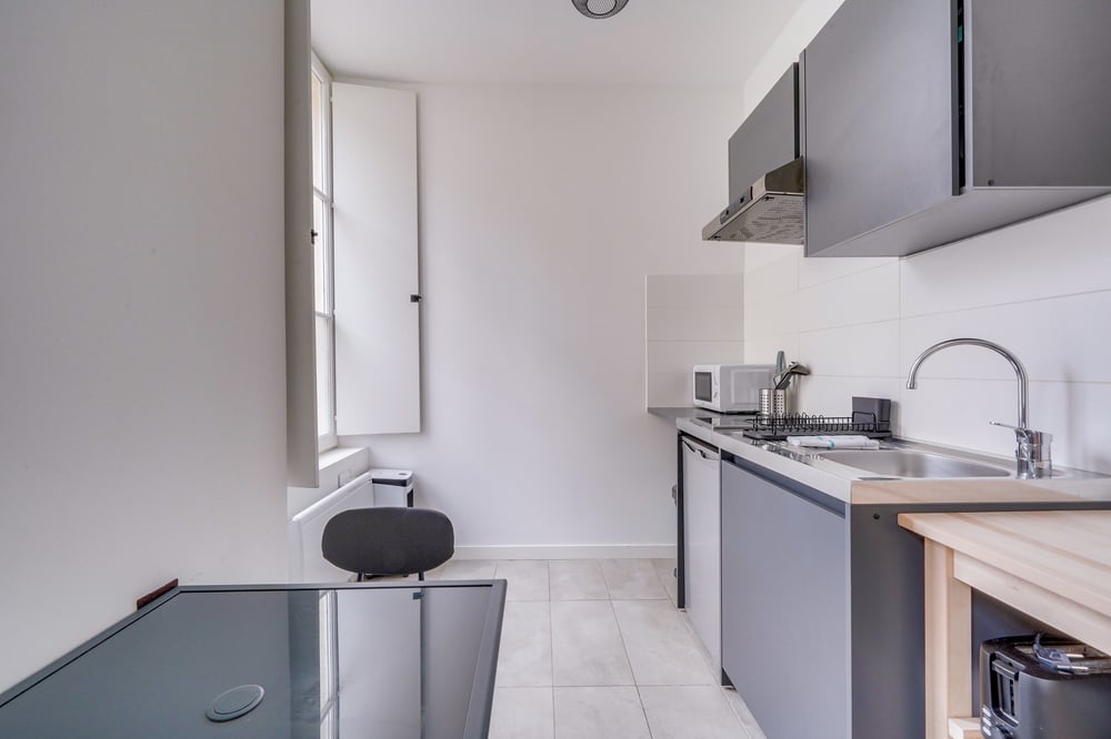 New apartment! Large renovated studio apartment in Bordeaux, a stone's throw from the Marché des Capucins. The flat is spacious and perfectly laid out, with all the facilities you need for a pleasant stay. All transport links nearby, including tram, bus and Gare Saint-Jean.