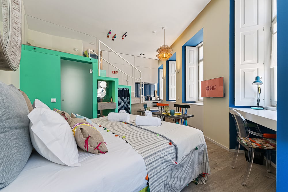 Welcome to my studio! This stylish 30 m² studio in Braga is the perfect retreat for couples looking for a comfortable and memorable stay. Located on the first floor and accessible by lift, the studio combines innovative design with comfort. The open-plan living area includes a comfortable seating space on a mezzanine level. The adjoining kitchenette comes fully equipped with everything you need to prepare delicious meals, including a stove, oven, microwave, cookware, and cutlery. A dishwasher is also available to make cleaning up effortless, along with ironing equipment for added convenience during more extended stays. The sleeping area has a king-sized bed in hotel-quality linens to ensure a restful night's sleep and a wide-screen TV, which is ideal for relaxing evenings and catching up on your favourite shows. The bathroom has all the necessary amenities, including clean towels and complimentary toiletries, making your stay as smooth and comfortable as possible. The studio is always professionally cleaned for your comfort. Enjoy your stay!