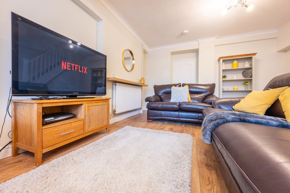 Welcome to Pandy Road by Tŷ SA - a bright and spacious 3 bedroom home located in the heart of Aberkenfig, Bridgend. Relax in the cosy living area, complete with ample seating and a large Smart TV- perfect for unwinding after a busy day. Complimentary Wi-Fi is included to keep you connected throughout your visit. The lounge flows into a spacious, fully equipped kitchen and dining area, designed to offer a true home from home experience whether you're cooking, dining, or gathering together. The addition of another sofa and TV in the kitchen with views of the garden make this space extra special. Beautifully decorated throughout, this inviting property features two comfortable double bedrooms and one cosy single, making it ideal for families, friends, or colleagues travelling together. Each room has plenty of storage for your belongings so you can be sure to feel at home During your stay. The modern family bathroom is fully equipped with everything you need, including a large walk in shower and all other amenities you should expect to find. To top it off, the property boasts a generous garden with outdoor seating which is ideal for enjoying a bit of fresh air or an alfresco meal. Whether you're visiting for work or leisure, Pandy Road provides a comfortable and well located base for your stay in Bridgend.