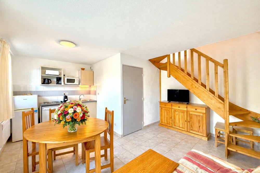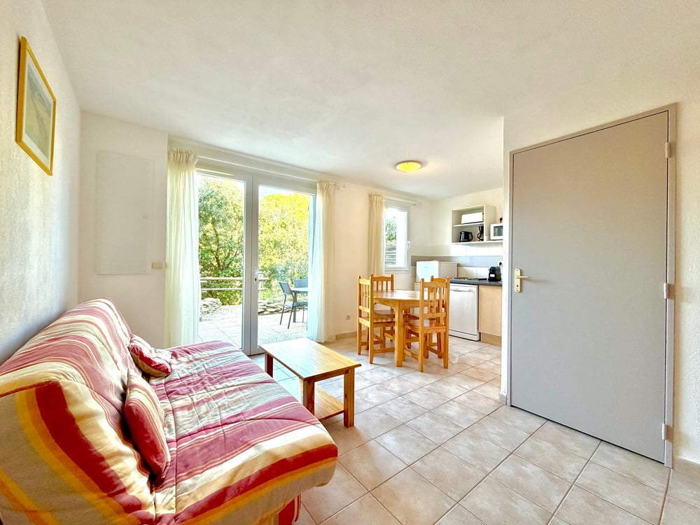 🌟 Charming holiday home in the heart of Mas des Vignes 🌟 Highlights of the property: 🌿 Lush and secure residence 🏊 Shared heated pool with a slide for children;For your information, swimming shorts are not allowed. 🎾 On-site activities: multisport courts, playground, fitness trail, ping-pong tables, pétanque courts, an indoor heated pool open all year, and an outdoor pool with a waterslide. 🍹 A bar and restaurant are available on-site during the summer season. 🙍♂️ Perfect for families with 3 rooms and 4 beds 🌞 Private terrace with open views, ideal for sunset drinks 🛏️ Bed linen and towels provided for maximum comfort Enjoy a relaxing stay in Calvisson in a cozy and functional house designed for 4 guests. It features two comfortable bedrooms, a bright living room with a sofa, a fully equipped kitchen, and a modern bathroom. Book now and create unforgettable moments at Mas des Vignes! 🌳 🎉 No parties, but friendly gatherings with family or friends 🤗 Maximum 4 guests 🚭 Non-smoking house 🍽️ Meals only in the dining area or on the terrace 🤫 Please respect the peace of the residence, The accommodation is equipped with a sound level meter to monitor the noise level (in decibels). 🏡 House size: approximately 40 m²