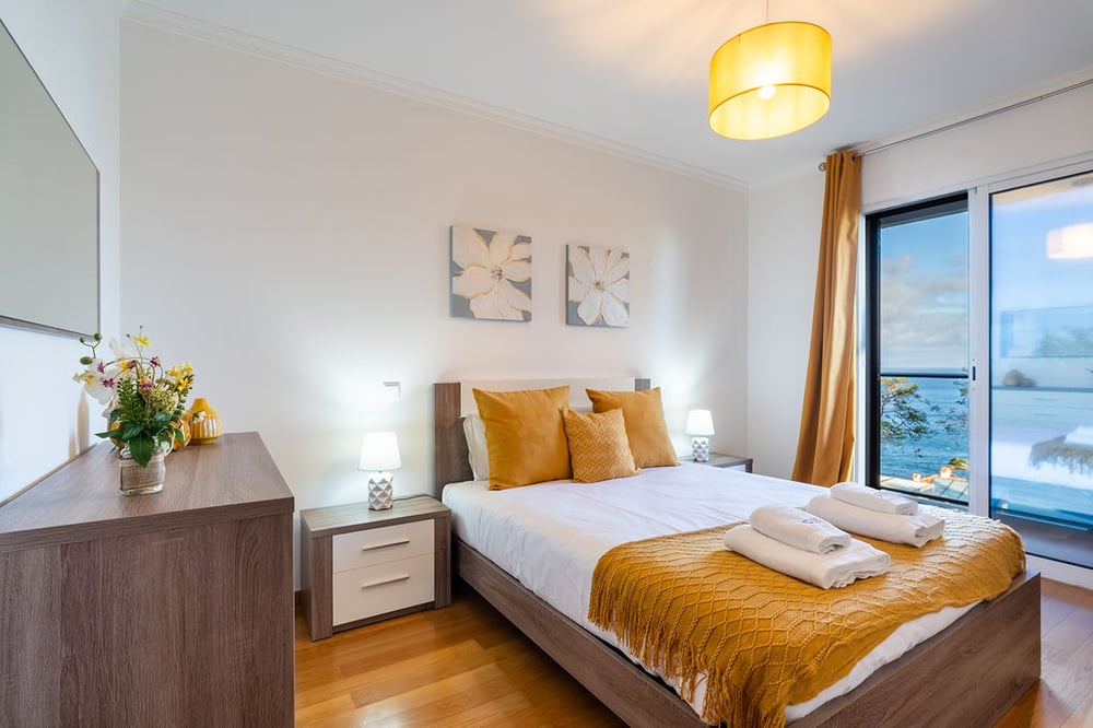 Welcome! This charming apartment, decorated to provide well-being and make you feel at home, is the perfect starting point to explore Caniço and its surroundings. Ideal for couples or families, this accommodation features a spacious living and dining area, equipped with a comfortable L-shaped sofa, coffee table, TV and dining table with six chairs, perfect for enjoying meals together. The kitchen is fully equipped, ideal for preparing all your daily meals. It features an induction hob, oven, microwave, toaster, coffee machine and fridge-freezer, as well as full crockery and utensils for your everyday convenience. A dishwasher and washing machine are also available. The apartment has two bedrooms, each equipped with a queen-size bed, wardrobe, bedside table and heater for your comfort. Both bedrooms have blackout blinds to ensure peaceful nights. In the first bedroom it is possible to split the bed into two single beds. The second bedroom also has direct access to the balcony. The bed comes with quality bed linen to ensure maximum comfort. The apartment has two full private bathrooms, one with a shower cabin and one with a bathtub. The bathroom has all amenities, including towels and personal hygiene products for your convenience. Guests also benefit from one private, covered parking space, available in the underground garage. The space is always professionally cleaned. Enjoy your stay!