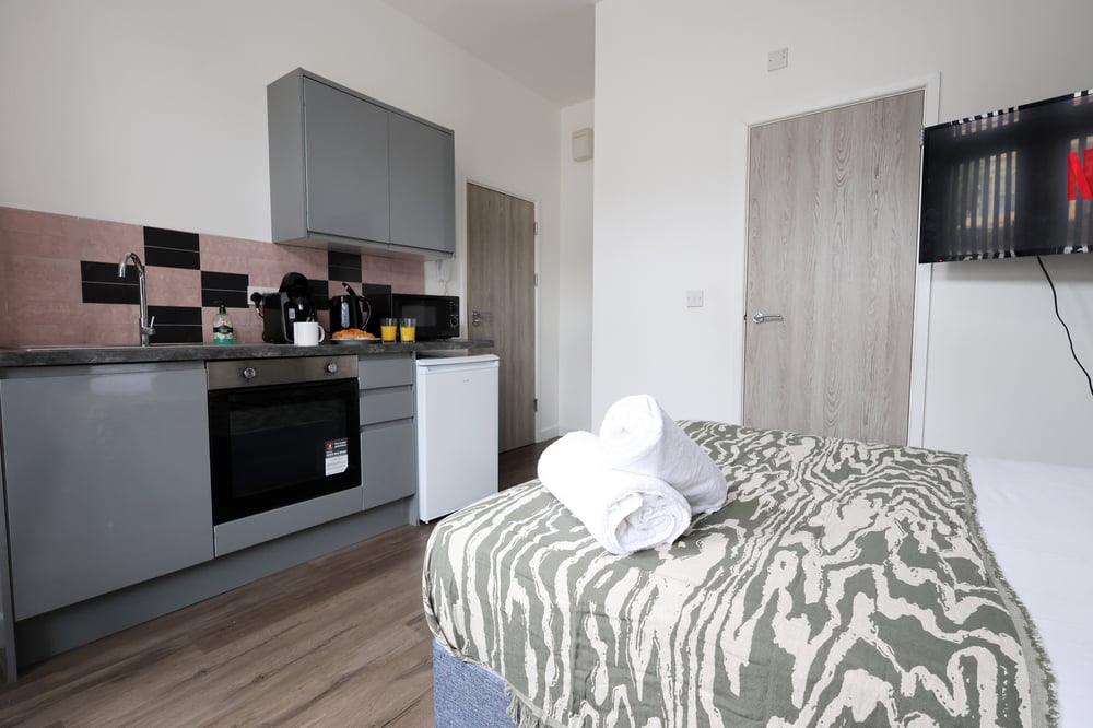 Experience comfort in this bright studio near Cardiff City Centre, ideal for work or leisure. It features a fully equipped kitchenette, cozy sleeping area with premium linens, and a modern bathroom. Just minutes from vibrant attractions, enjoy superfast WiFi, free secure parking, and hassle-free self check-in. Perfect for solo travelers and couples.