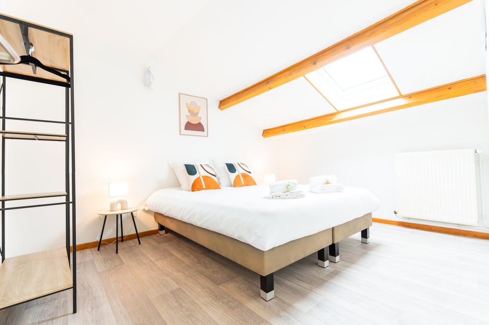 HIGHLIGHTS → PROFESSIONAL LINEN & CLEANING → HIGH-SPEED WIFI → CLOSE TO CITY CENTER Details → The apartment is located on the 2nd floor of a 3-story building. → It is a duplex. → The apartment includes: 3 bedrooms (each with a double bed) 1 shower room 1 bathroom → Self check-in via key box or smart lock 100% PRACTICAL → 2 comfortable double beds → High-speed WiFi (speed to be specified if needed) → HD TV for your evenings → Fully equipped kitchen: oven, microwave, toaster, kettle, coffee machine → Washing machine → Everything you need to cook and feel at home 100% CLEAN → Bed and bath linen washed and ironed by a professional laundry service → Professional cleaning carried out between each stay