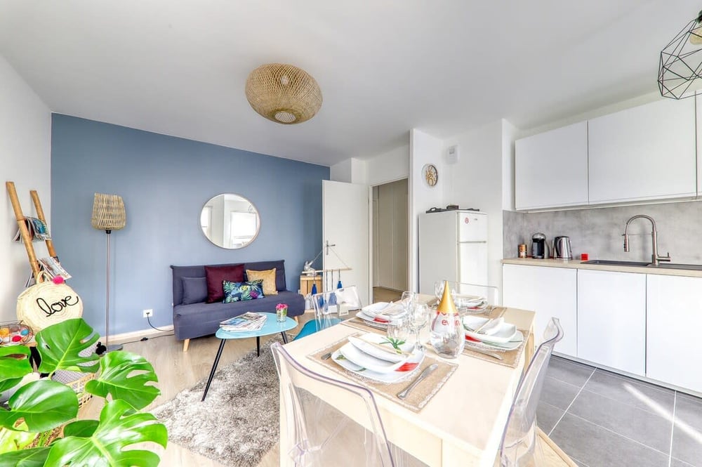 → Appartement 2 pièces 4 personnes, Tout Confort → 1 chambre avec un grand lit double 1160*200 et salon avec canapé convertible → Parking privé sécurisé et gratuit dans l'immeuble → WIFI INTERNET FIBRE HAUT DÉBIT → TV BOX avec de multiples chaînes télé → Cuisine ouverte EQUIPEE pour jouer les chefs étoilés et savourer la gastronomie Parisienne( Four , Micro onde , Grille Pain , Cafetière , bouilloire... ) → MACHINE À LAVER