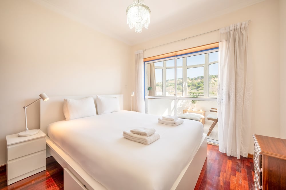 Welcome to my apartment! Situated on the 4th floor with an elevator, our one-bedroom apartment offers a fantastic place to stay, providing the perfect base to experience the charm of Costa da Caparica. Whether you're a beach lover, a foodie, or a traveller eager to explore, this sunny destination has something for everyone. The living room features a sofa, two armchairs, a flat-screen TV to watch all your favourite shows, a dining table where you can dine with loved ones and a door leading to a furnished indoor balcony with a mountain view, perfect for unwinding. The kitchen has essential cookware and cutleries to cook some delicious homemade meals. The bedroom has a queen-sized bed with complimentary hotel-quality linens to ensure guests sleep well. The bathroom contains all the essentials; clean towels and complimentary toiletries will also be provided for your convenience. The apartment is always professionally cleaned for your comfort. Enjoy your stay!