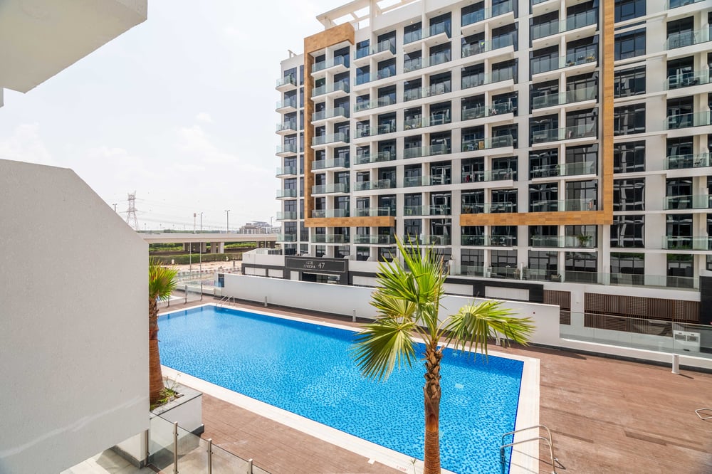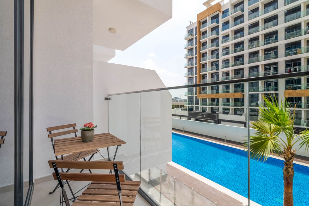 Welcome! This splendid 41m2 apartment is located on the 2nd floor, accessible by lift. The luxurious living space features expansive floor-to-ceiling windows that flood the room with natural light offering pool views. The room is elegantly furnished with a modern aesthetic, including a comfortable sofa bed and a large flat-screen TV. The attached balcony provides additional outdoor space to relax. The kitchen includes appliances, essential cookware, and crockery to fulfil culinary requirements. A washer is available for your laundry needs. The bedroom contains a comfortable queen-size bed with hotel-quality linens to ensure a good night's sleep and multiple storage spaces. The bathroom has all the amenities you will need to freshen up, including fresh towels and toiletries for your convenience. The apartment is always professionally cleaned for your comfort. Daily housekeeping services are available upon request for an additional fee. Please note, Dubai is a vibrant and ever-growing city, and with these developments come occasional construction in the apartment building or surrounding area. While this may bring some urban sounds or affect the views from the property, it is all part of the city’s dynamic growth. We truly appreciate your understanding and look forward to hosting you. Enjoy your stay! GuestReady is not the owner of this property and acts solely as an agent managing the property on behalf of the owner.
