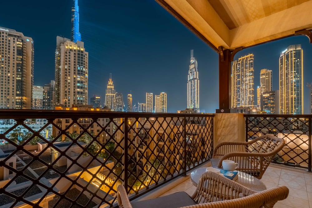 Downtown Dubai is a dazzling hub that offers some of the most spectacular views in the city, both during the day and at night. The iconic Burj Khalifa dominates the skyline, standing as the world’s tallest building, while the sleek, modern design of The Address Hotel adds to the architectural grandeur of the area. From this central district, visitors can enjoy sweeping vistas of Old Town Dubai, with its charming traditional buildings that evoke a sense of historic Arabia, beautifully contrasting the ultramodern surroundings. By day, the neighbourhood buzzes with activity, offering incredible shopping, dining, and entertainment options. As the sun sets, Downtown Dubai transforms into a magical scene, with the Burj Khalifa and surrounding buildings illuminated, creating a stunning visual spectacle. Whether you’re relaxing in one of the many upscale cafes or enjoying a view from your hotel room, the charm of Downtown Dubai lies in its seamless blend of contemporary luxury and classic Arabesque architecture.