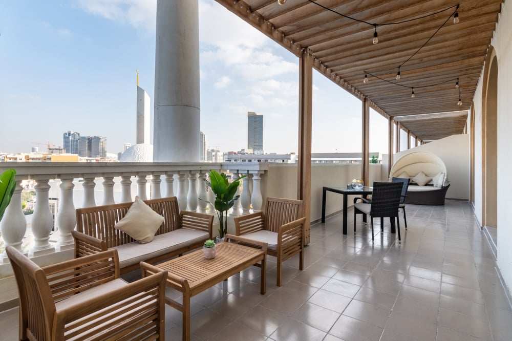 Perfect balcony and interiors, a bit noisy because of the constructions in JVC, 24/7 market at the entrance of the building, good staff...