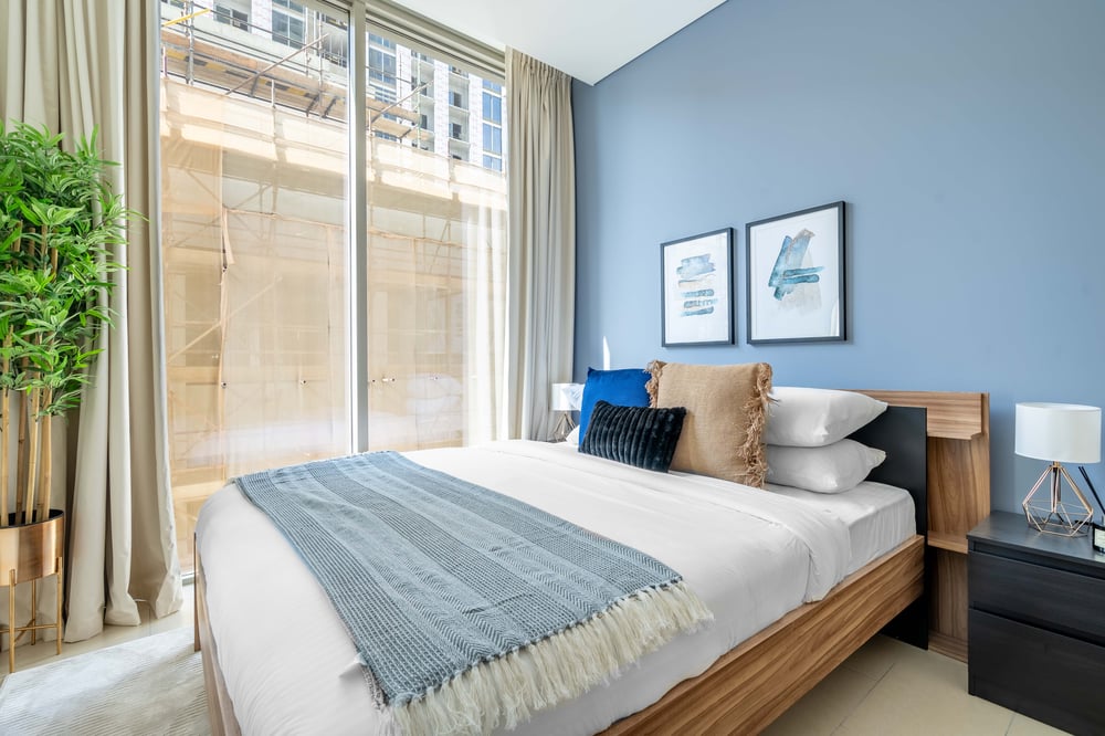 Welcome to my home! The living room is elegantly furnished and well-kept, with a sofa bed, a TV to watch all your favourite shows and a dining table. It is also generously lit, perfect for sharing moments with your group. The area includes floor-to-ceiling windows that lead onto a large furnished balcony where you can fully relax. The open-plan kitchen includes top-of-the-range appliances, essential cookware, and cutleries to fulfil any culinary requirement. There is also a washer available for your laundry needs. The first bedroom is equipped with a king-size bed and the second with a queen-size bed. Both bedrooms are elegantly decorated and the beds come with complimentary hotel-quality linens. The bathroom has all the amenities you will need to freshen up, including clean towels and toiletries for your convenience. The apartment is always professionally cleaned for your comfort. Daily housekeeping services are available upon request for an additional fee. Please note, Dubai is a vibrant and ever-growing city, and with these developments come occasional construction in the apartment building or surrounding area. While this may bring some urban sounds or affect the views from the property, it is all part of the city’s dynamic growth. We truly appreciate your understanding and look forward to hosting you. There is a building under construction on the left-hand side of the apartment building. However, it does not affect the apartment or its surroundings. Enjoy your stay! GuestReady is not the owner of this property and acts solely as an agent managing the property on behalf of the owner.