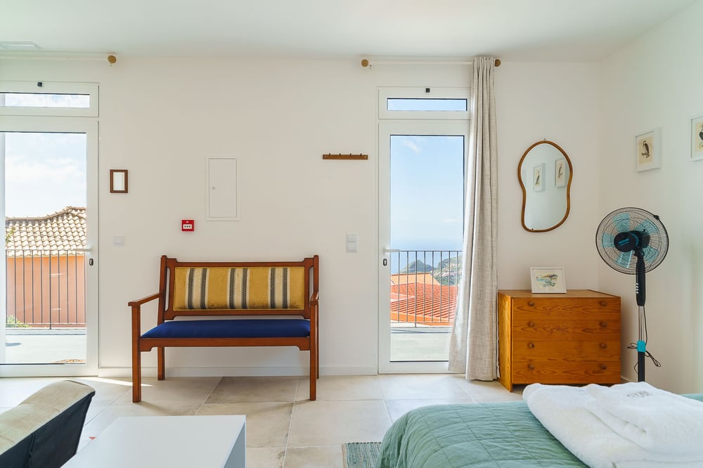 Welcome! The property is just a 10-minute drive away from the centre of Funchal, providing easy access to various tourist spots and services. It is important to note that the house is a short 80m walk from roadside parking, and guests are advised that the access is a little steep. Furthermore, we recommend that guests looking to stay with us have their own transport, either a car or scooter, as local transport links and taxis are limited outside of Funchal. This property is conveniently located in the town of Estreito de Camara de Lobos. The village boasts a local farmers market, several small cafes and the famous As Vides restaurant, which is widely believed to serve the best Espatada on the whole Island. This lovely 58m² studio boasts tasteful decor and a modern feel with wonderful views across the valley and the sea, especially from the spacious balcony. The open-concept design seamlessly combines living, dining, sleeping, and kitchen areas. You'll find a comfortable double bed with complimentary hotel-quality linens, a sofa, a flat-screen TV for enjoying your favourite shows, and a dining table perfect for sharing meals. A door leads to a balcony, offering a serene spot to relax. The kitchenette is fully equipped with essential cookware and utensils, including an electric hob, oven and a coffee machine, so you can prepare delicious meals with ease. Multiple windows flood the space with natural light, creating a bright and welcoming atmosphere. Though small the bathroom is thoughtfully stocked with clean towels and complimentary toiletries for your convenience. Professionally cleaned for your comfort, the studio is located on Pedestrian street and has some stairs to access it. Enjoy your stay!
