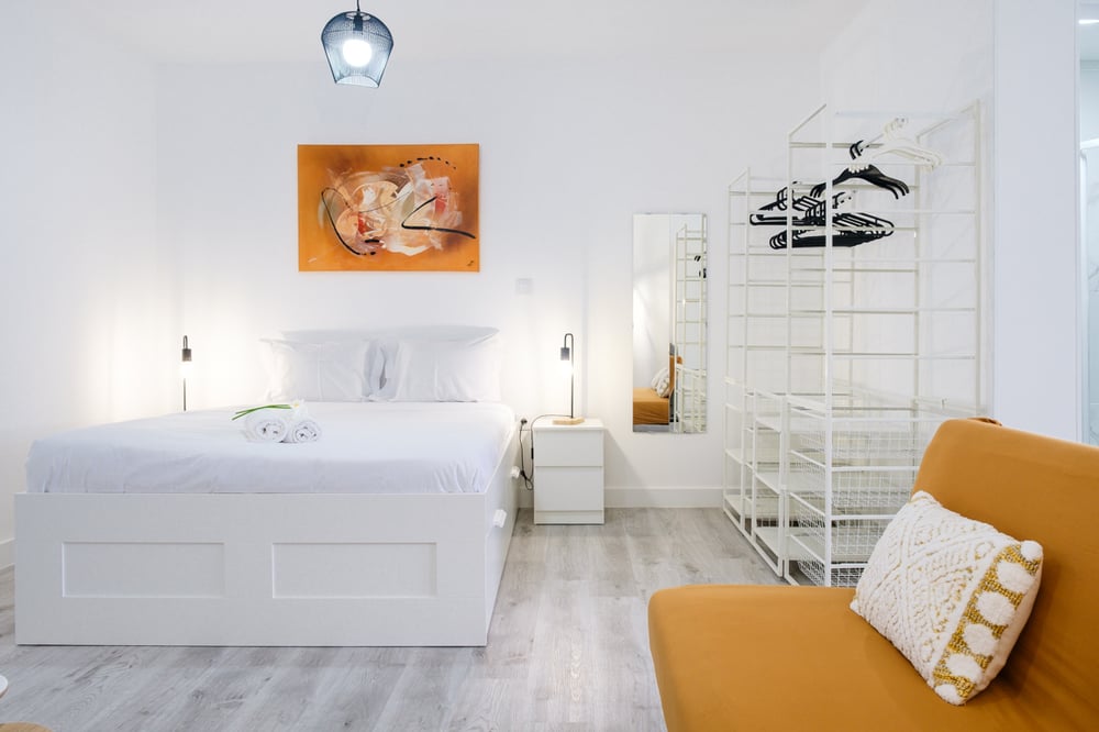 Welcome to my studio! Tastefully decorated, this lovely studio of 45m2 is close to various top attractions, stores, supermarkets and plenty of restaurants in the surrounding areas with multiple gastronomy options. Relax in the living room, which features a comfy double sofa bed, a TV and a double bed with complimentary hotel-quality linens for maximum comfort. The area is warm and bright, with a lot of natural sunlight that brightens up the space, making it even more inviting. It has access to a backyard. The adjacent kitchen is fully equipped with essential cookware and cutlery you'll need to cook delicious meals, such as an electric hob, an oven and a coffee machine. There is also a dining table. The bathroom contains all the essentials you'll need for convenience, including clean towels and complimentary toiletries. The space is always professionally cleaned for your comfort. Enjoy your stay!