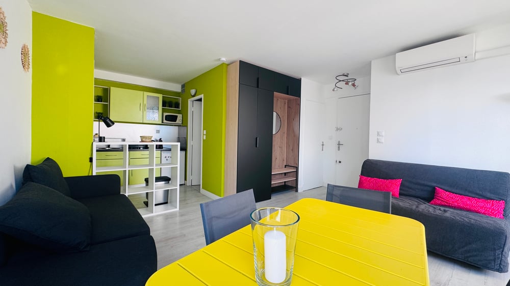 ☀️ Le Temple du Soleil welcomes you for a relaxing stay in La Grande-Motte! 🏖️ Perfect for 2 to 3 people, this modern studio is ideally located: just steps from the beaches, shops, restaurants, and the market. 🛏️ Sheets and towels included. 📆 Book now for an unforgettable vacation in the Mediterranean!