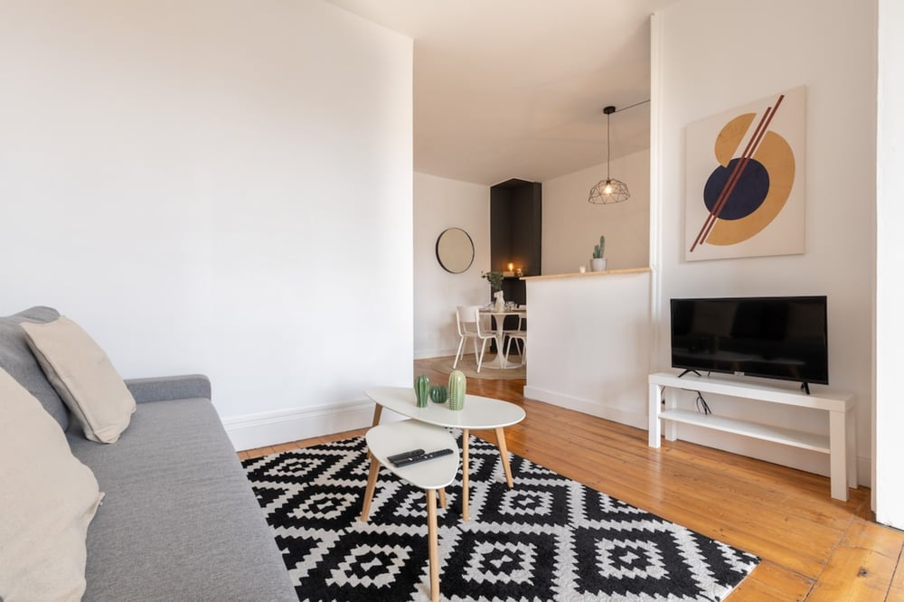 You will appreciate this accommodation for its charm, its large bright living room, its fully equipped kitchen, two spacious bedrooms with double beds and a large bathroom with bathtub and washing machine. The apartment is located on the third floor of a beautiful building with an elevator, you will have access to the entire accommodation. It will be carefully prepared for your arrival: Professional maid service + laundry for linens. All linen is provided: bed linen, bath towels, bath mats and tea towels. The kitchen is equipped with all utensils and dishes for lunch and dinner. Here are the entertainment available to you via TV: Molotov TV, Prime Video!