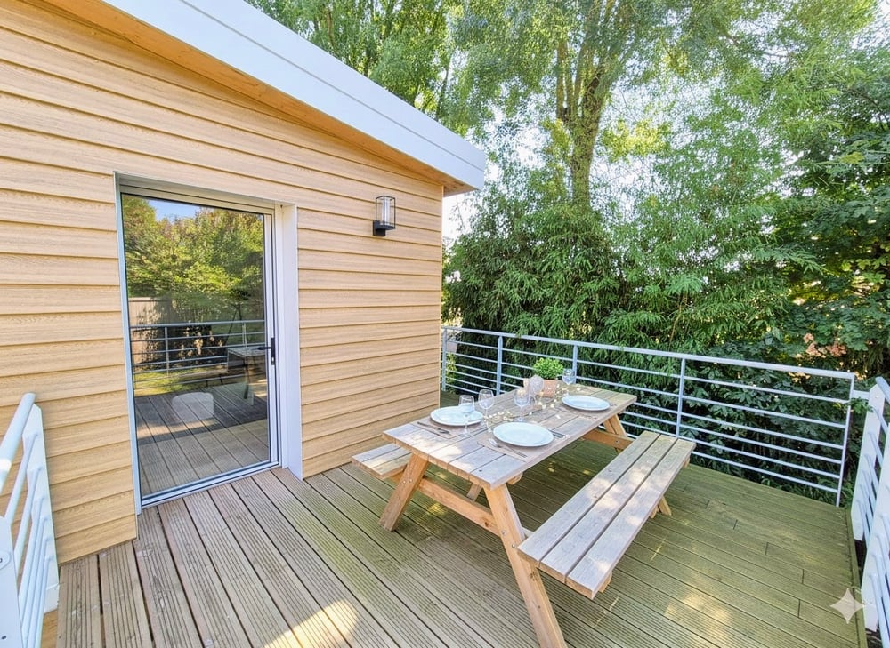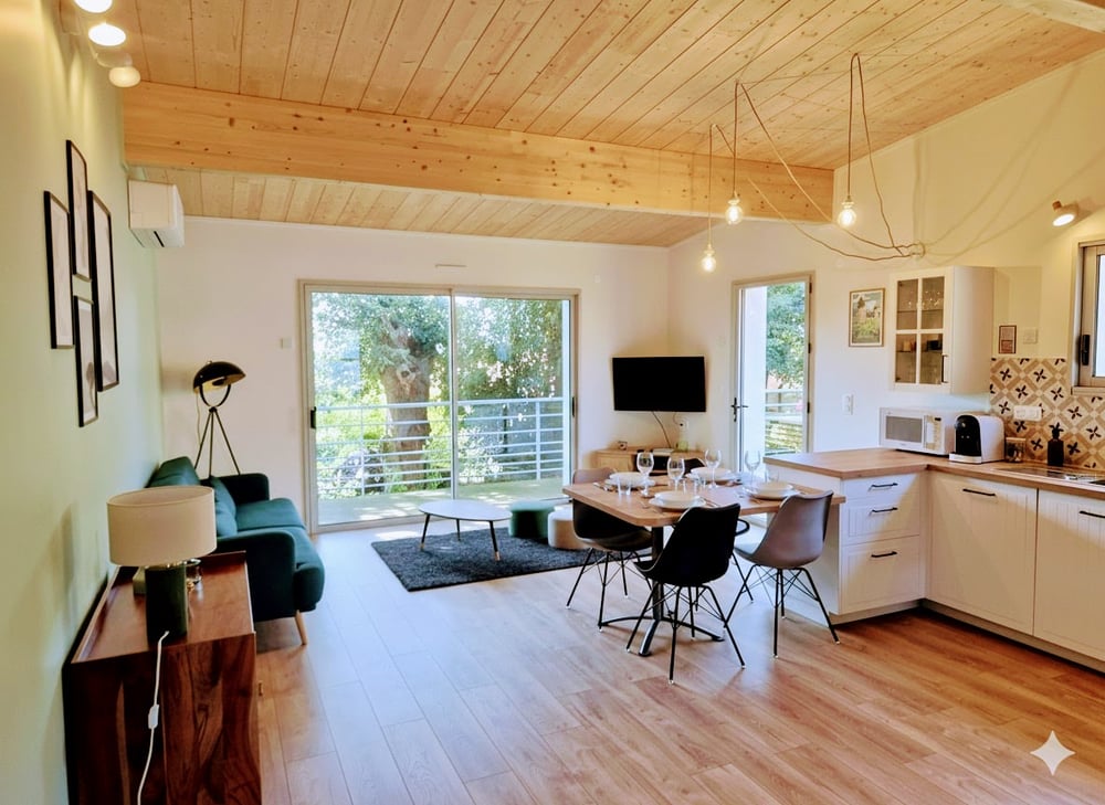 -> Charming 2024 wooden cottage in Les Herbiers, ideally located near shops and just 13 minutes from Puy du Fou. 70 m² with 2 bedrooms + sofa bed, fully equipped kitchen, and air-conditioned living room. Garden, terrace, and private parking. Perfect for a stay combining comfort, nature, and leisure.