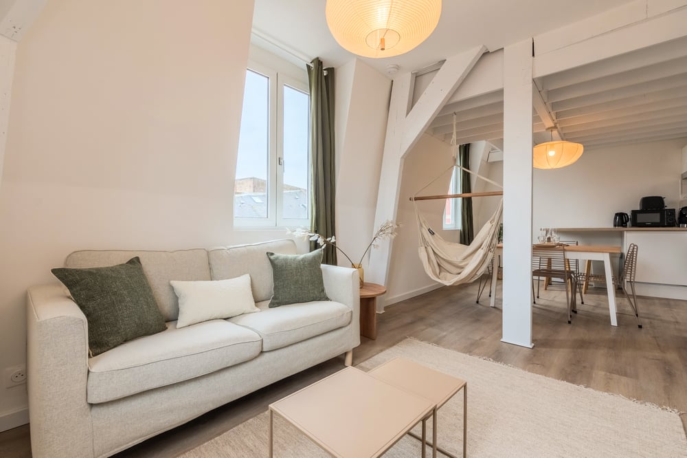 This apartment is located in the heart of Old Lille, rue de la Caserne Saint-Ruth. It is third floor without elevator (steep stairs) of a secure building. The accommodation was renovated in 2023, it is very functional and pleasant to live in. Ideal for visiting Lille and/or for your business trips! Please note, the accommodation is not suitable for people with reduced mobility.