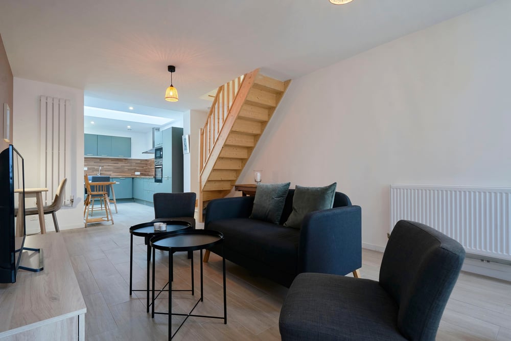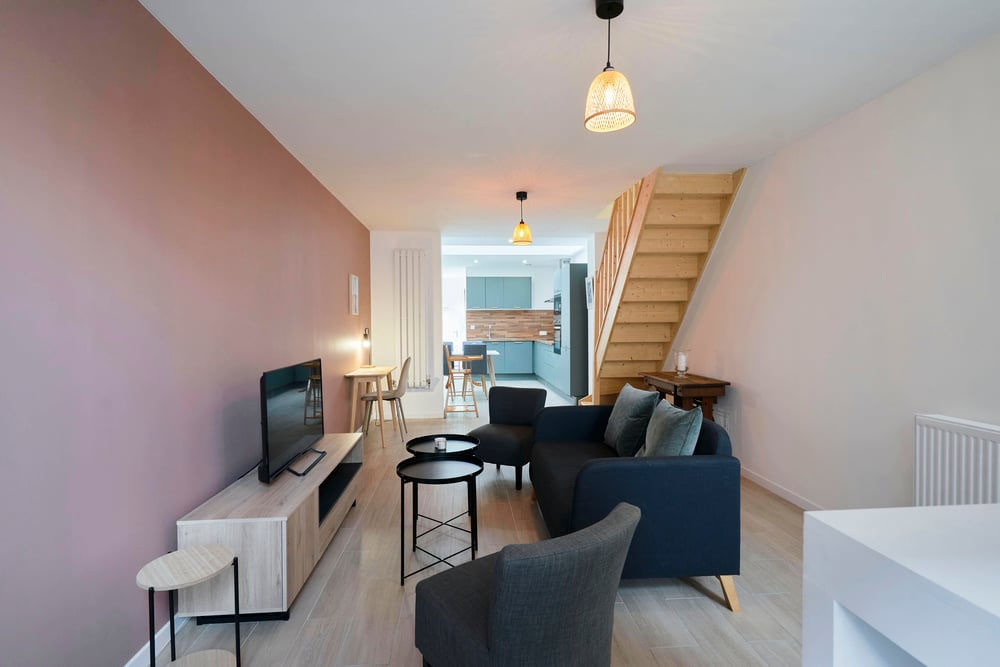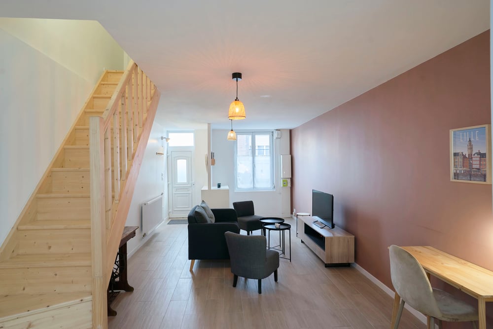 The house is located in a quiet environment and is built over three floors. Please note that the staircase to access the accommodation is typical of our pretty Lille buildings: the stairs are narrow, so we recommend that families with young children or people with mobility difficulties take this into consideration before booking. First floor: - Living room with sofa and armchair - Open kitchen with dining area - Bathroom with shower - WC - Terrace for sunny days Second floor: - One bedroom with double bed (140*200) - One bedroom with bunk bed (90*190) Second floor (converted attic): - Accessible from the bedroom with bunk bed via a miller's staircase, a rest area or playroom for children. A washing machine, highchair and cot will also be available during your stay. Professional cleaning service + laundry service for household linen. All linen is provided: bed linen, bath towels, bath mats and tea towels. The kitchen is equipped with all utensils and dishes for lunch and dinner. Entertainment available via TV: Molotov TV, Prime Video!