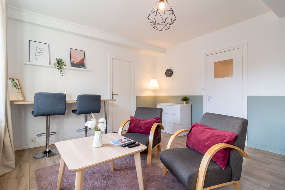 The flat is located on Place Saint Hubert, on the second floor of a small building, and you will have access to the entire unit. It comprises a living room with lounge, fitted kitchen, table and high chairs. A bedroom with a 140x200 double bed, a bathroom with shower and a separate WC. Like many parts of our beautiful city of Lille, the area can be lively at night! The flat will be carefully prepared for your arrival: Professional cleaning service + laundry for household linen. All linen is provided: bed linen, bath towels, bath mats and tea towels. The kitchen is equipped with all utensils and dishes for lunch and dinner. Entertainment available via TV: Molotov TV, Prime Video! The staircase to access the accommodation is typical of our pretty buildings in Lille: the stairs are narrow, so we recommend that families with young children or people with mobility difficulties take this into consideration before booking and do not bring heavy luggage. Ideal for couples, singles or business travellers, you'll love the comfort and central location of this flat!