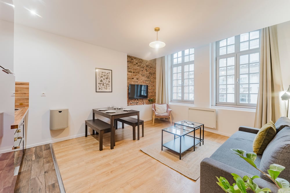 This apartment in a typical Lille building, second floor (no lift). It comprises a living room with dining area, an equipped kitchen, a quiet bedroom with a comfortable double bed, a bathroom with shower and toilet. The accommodation will be carefully prepared for your arrival: Professional cleaning service + laundry service for household linen. All linen is provided: bed linen, bath towels, bath mats and tea towels. The kitchen is equipped with all utensils and dishes for lunch and dinner. Entertainment available via TV: Molotov TV, Prime Video! You'll love the location of this apartment - everything is within walking distance!