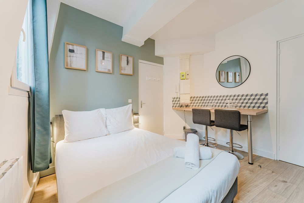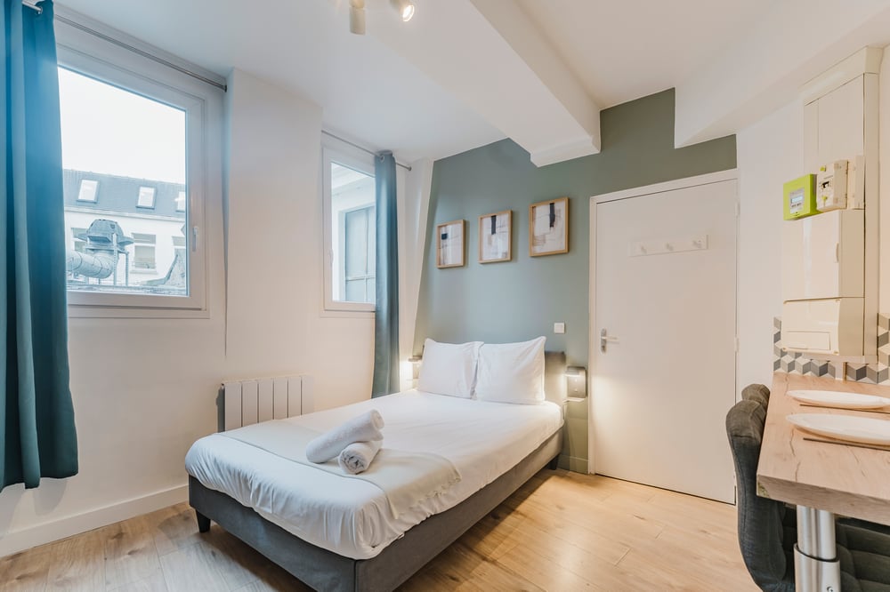The apartment is located on Place des Reignaux, on the third floor of a beautiful, typical Lille building, and you'll have access to the whole apartment. The staircase to access the apartment is a little narrow, so we recommend that people with mobility difficulties take this into consideration and avoid traveling with large suitcases! The apartment consists of a living room with double bed, a fully equipped kitchen with dining area, a bathroom with shower and toilet. We carefully prepare the apartment for your arrival: Professional cleaning service + laundry service for household linen. All linen is provided: bed linen, towels, bath mats and tea towels. The kitchen is equipped with all utensils and dishes for lunch and dinner. Entertainment available via TV: Molotov TV, Prime Video! The apartment is in a fairly lively neighborhood, so for light sleepers, we advise you to bring your earplugs! We appreciate the surface area, the facilities and the proximity to the city center!