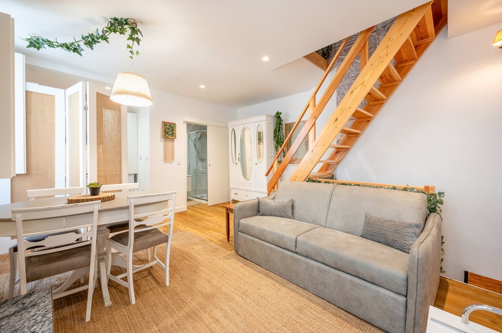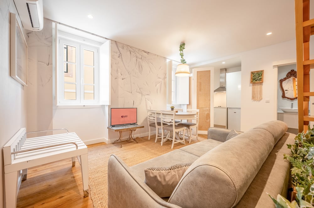 Welcome to my home! This charming 30m² apartment is conveniently located near the top attractions, shops, and supermarkets. The surrounding area also offers a wide variety of restaurants, giving you plenty of culinary options to explore. The living room features a comfy sofa bed where you can relax, a TV to watch all your favourite shows and a dining table. The area has a warm ambience, a lot of natural sunlight that brightens up the space, making it even more inviting. The kitchenette is fully equipped with all the essentials you need to prepare a meal, including cookware, cutlery, an electric hob, microwave, coffee machine, and other utilities. A washing machine is also available for your convenience. The bedroom is cosy and comfortable, with a double bed, a wardrobe, and hotel-quality linens to ensure a restful night’s sleep. The bathroom includes all necessary amenities, towels, and toiletries for your convenience. The apartment is professionally cleaned before every stay, guaranteeing a comfortable and pleasant experience. IMPORTANT NOTE: IT IS LOCATED ON THE 3RD FLOOR WITHOUT AN ELEVATOR. We hope you enjoy your stay! Please note that the apartments are located in the Bairro Alto area, a lively part of the city. Noise may be heard at any time of the day or night.