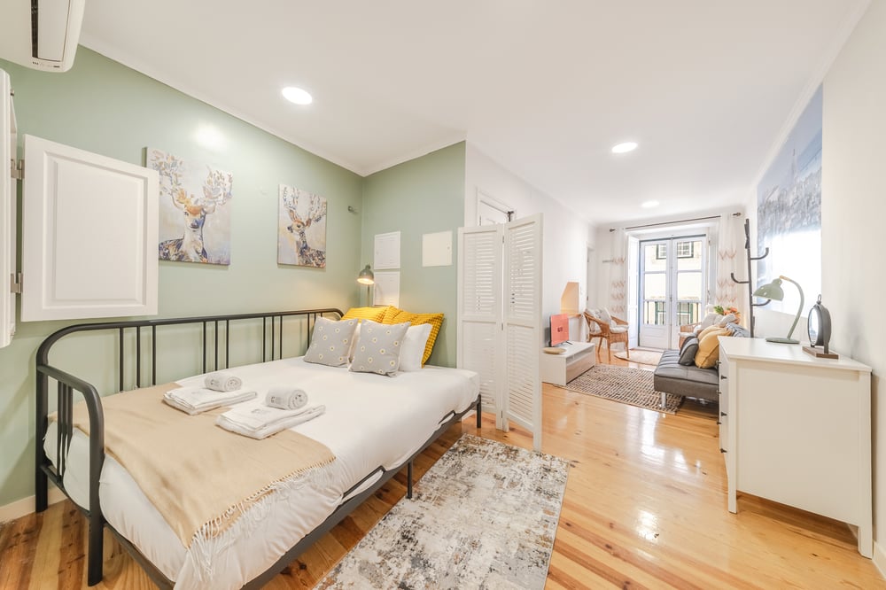 Welcome to your cozy 40 sqm studio in the heart of Alfama, perfect for two travelers. Enjoy a tranquil stay with a comfortable double bed, a sofa bed with topper (for up to two children only), and a modern bathroom. Relax on the sofa after a day of exploring or catch up on your favorite shows on the smart TV. An ideal base for discovering Lisbon's historic charm.