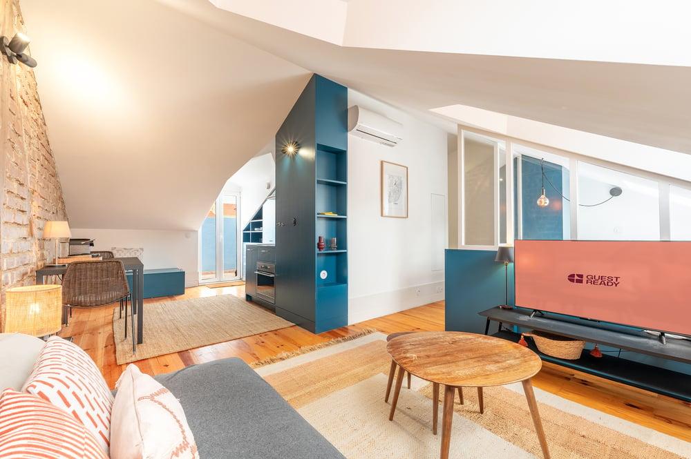 Welcome to my studio! This charming 26 m² studio in Lisbon is the ideal retreat for guests seeking comfort, convenience, and a memorable stay. The open-plan living area features a versatile bed, for an extra guest, that converts into a sofa, a TV for all your favourite shows, and a dining table perfect for enjoying meals or working remotely. A charming Juliet balcony adds a touch of elegance and allows fresh air and natural light to flow into the space. The adjacent sleeping area features a plush double bed dressed in premium hotel-quality linens, ensuring restful nights. You’ll also find ample storage for your belongings, making longer stays more comfortable. Although there's no wall or door dividing them, the two sleeping areas are partially separated by the placement of furniture, offering a sense of privacy and added comfort. The fully equipped kitchen comes with everything you need to prepare home-cooked meals, including a stove, oven, microwave, and all essential cookware and cutlery. A dishwasher is also provided for easy cleanup. The bathroom contains all the necessary amenities, including clean towels and complimentary toiletries. For your comfort and peace of mind, the studio is professionally cleaned before each arrival. BE AWARE THAT THE STUDIO IS LOCATED ON THE THIRD FLOOR WITHOUT AN ELEVATOR. Enjoy your stay!