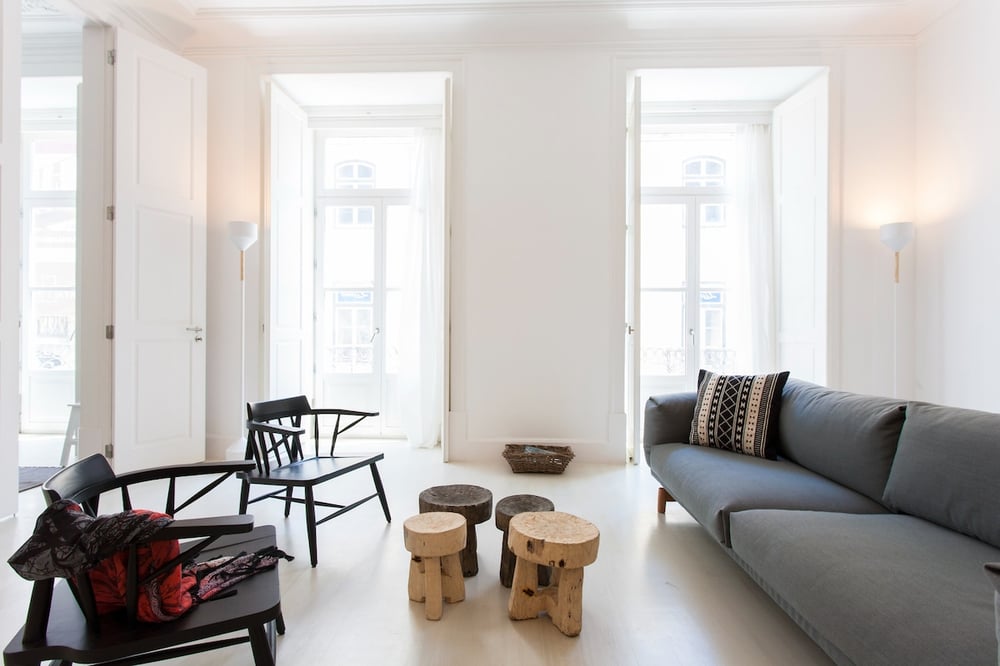Welcome! This apartment is located on the 1st floor and has elevator access. Beautifully furnished and tastefully decorated, this stunning 197 m² (2,120 ft²) apartment is ideally situated in Central Lisbon, close to some of the city's most famous attractions such as the Lisbon Cathedral, Rua Augusta, Santa Justa Lift, and the Baixa-Chiado subway station. The Baixa-Chiado metro station is just a 9-minute walk away, making it easy for guests to explore Lisbon and beyond. This apartment features a spacious open living, dining, and kitchen area, offering plenty of space to relax and entertain. The living room includes a comfortable sofa and ample seating, perfect for unwinding after a day of sightseeing. A large dining table provides space for shared meals with family or friends. The kitchen has essential cookware and cutlery for home cooking, including a refrigerator, oven, stovetop, microwave, toaster, coffee maker, and dishwasher. The apartment also comes with a washing machine for your convenience. The four bedrooms are designed for maximum comfort. Each is furnished with hotel-quality linens and equipped with storage space. Bed types include a mix of double and single beds to accommodate various group sizes. The 2.5 bathrooms contain all the essentials, including a shower or bathtub, toilet, wash basin, hairdryer, and complimentary toiletries. Towels are also provided for your convenience. Extra features include a cozy private balcony, ideal for enjoying morning coffee or an evening drink, and access to a charming communal garden where you can relax outdoors. A great place to relax after a long day out and about, this apartment is perfectly equipped for all your holiday needs. The home is always professionally cleaned for your comfort. Enjoy your stay!