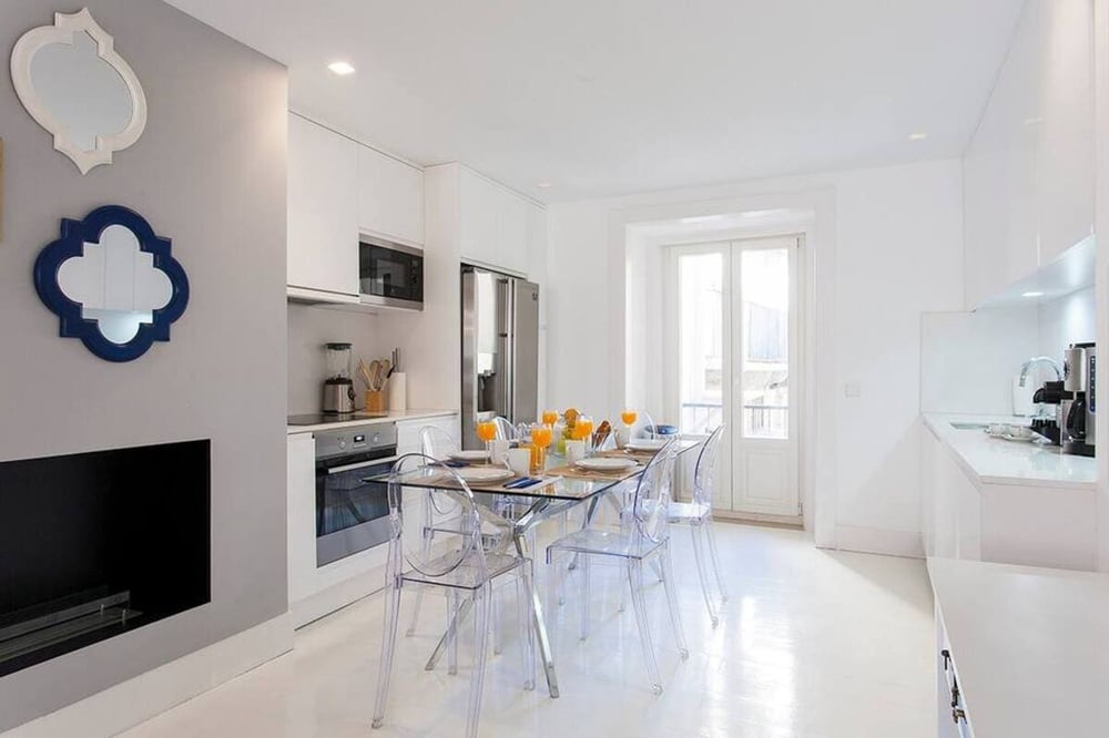 Modern 2-bedroom apartment in central Lisbon with a well-equipped kitchenette and cozy living area. Just steps from R. Madalena bus stop and minutes from Arco da Rua Augusta, Santa Justa Lift, and Pink Street.