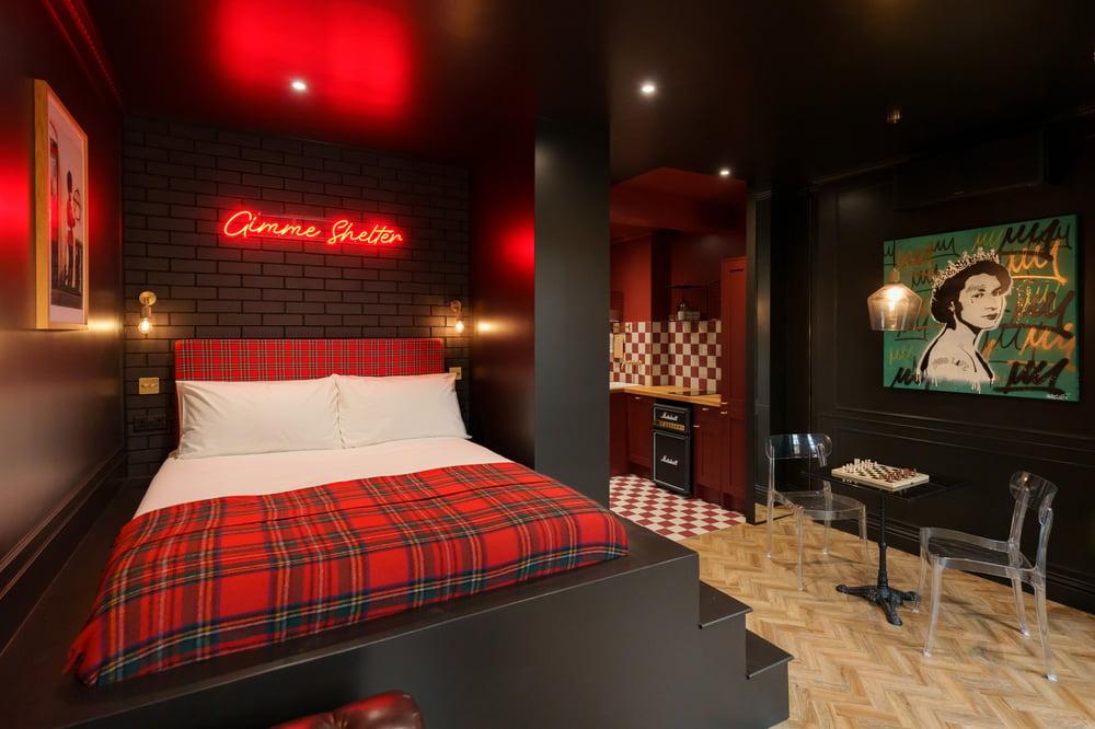 Welcome to The Camden Studios – your stylish, eco-friendly retreat in Central London! Dive into Camden's vibrant music scene, soak up the punk rock history, savor street food and explore nearby gems like Regent's Park, London Zoo, and Primrose Hill. Unwind in historic pubs, all just moments away. Our spacious, secure studios blend modern amenities with a unique character, offering the perfect base for your London adventure. This 25m2 studio, located on the ground floor, is a cozy, artistic space designed to reflect Camden's rich punk rock and musical history. The décor is full of character, with elements that pay homage to the area's iconic music scene. It features a comfortable double bed with hotel-quality linens for a restful night's sleep and a flat-screen TV with Netflix for unwinding after a day of exploration. For a special touch, this studio offers a hidden shared terrace – perfect for outdoor dining or drinks on warm summer evenings. The kitchen, with its bold red and white checkered design and warm wooden countertops, is fully equipped with all the essentials – microwave, toaster, kettle, and stovetop – blending functionality and charm. Complimentary tea and instant coffee are provided for your convenience. The bathroom is stocked with fresh towels and toiletries to keep you refreshed throughout your stay. Rest assured, the studio is professionally cleaned for your comfort, allowing you to truly relax. Enjoy your stay!