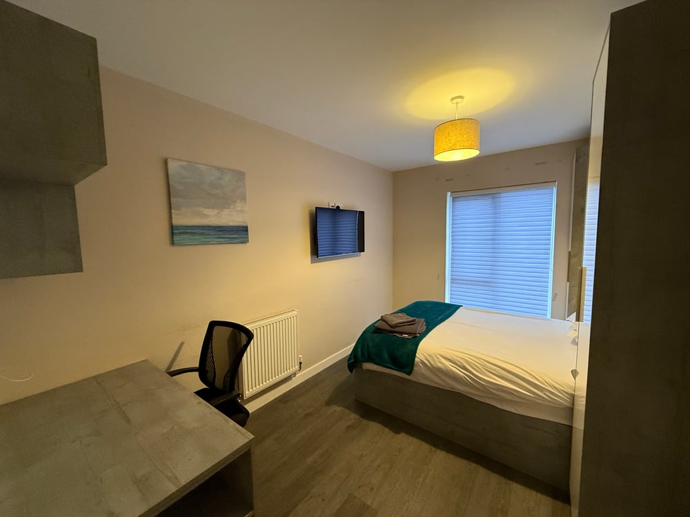 Welcome to your homely retreat in Egham – an ideal base for up to four guests. This lovely two-bedroom apartment blends modern comfort with everyday practicality. The bright open-plan living space is perfect for relaxing after a day out, while the fully equipped kitchen has everything you need to prepare meals with ease. Settle in with a film on the wall-mounted TV or enjoy a quiet evening in the calm, restful surroundings.
