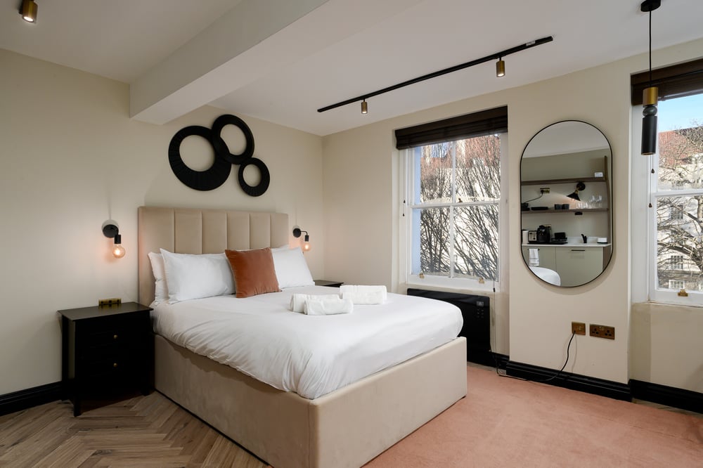 This stunning studio in London is centrally located, just a short walk from Euston train station, offering easy access to transport links across the city and other locations. The elegantly designed studio offers all the amenities you need for a comfortable stay. With its prime location, you'll have easy access to all the attractions, restaurants, and shopping London offers.