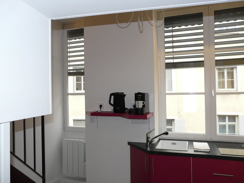 🏡 Accommodation Welcome to our cozy studio apartment located at 12 rue des Pierres Plantées, in the heart of the iconic Croix-Rousse district. It is located on the second floor of a typical old Lyon building, offering peace and authenticity. The accommodation consists of a main room with a small sofa and kitchenette, a mezzanine with a comfortable double bed (160×200), and a private bathroom located on the ground floor (shower, toilet, sink). Equipped with two HD TVs, high-speed fiber internet, and quality bedding, it is the ideal cocoon for a tourist, business, or romantic stay in the heart of Lyon. Rated 2 stars and an official partner of the Lyon Tourist Office, this apartment offers a unique atmosphere and an authentic setting from which to discover the capital of Gaul. The Croix-Rousse metro station (line C) is just a few steps away, and the Place des Terreaux is a 10-minute walk away. 🍽️ Fully equipped kitchen The compact but functional kitchen has everything you need to prepare your meals: refrigerator, stove, microwave, Nespresso coffee machine, kettle, toaster, kitchen utensils, and dishes. Ideal for simple cooking during your stay. 🚿 Private bathroom The bathroom, located on the ground floor of the apartment, is private and equipped with a shower, toilet, and sink. Sheets and towels are provided. GREENLAB soap and shower gel, an eco-friendly brand. 🎁 A few welcome products at your disposal A small selection of complimentary items is available to get your stay off to a good start: pasta, rice, and basic essentials. A few coffee and tea pods (welcome quantity only). You will also find a comprehensive Traveler's Guide with useful addresses, instructions, Wi-Fi information, tips, and more. 🔑 Check-in & check-out 100% independent check-in from 3 PM via a key box. Check-out by 11 AM at the latest. ✨ Our extras Late check-out until 1 p.m.: +18E (upon request, no later than the day before) ⚠️ Rules As mentioned in the ad, parties and any noisy events (loud music, etc.) that could disturb the neighborhood are prohibited. Smoking is also prohibited inside. Any violation will result in a financial penalty. Thank you for your understanding 😊