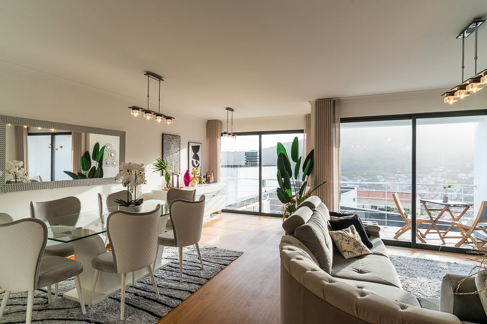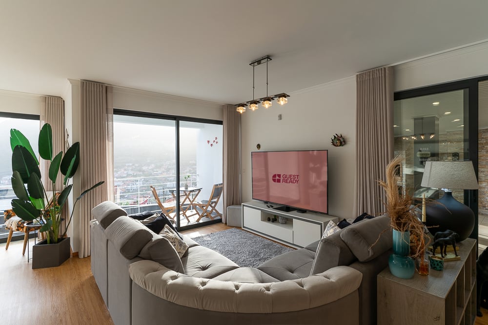 Welcome to my home! The living room is beautifully furnished and impeccably maintained, featuring a cozy sitting area, a sofa and a TV for enjoying your favorite shows. The space is well-lit and ideal for spending quality time with your group. Step out onto the balcony, where you'll find a table and chairs to take in the stunning views. The kitchen is equipped with high-quality appliances, essential cookware, and utensils to meet all your culinary needs. There's also a dining table for meals and a washer available for your laundry convenience. The home boasts two bedrooms with queen beds and a third bedroom with two single beds. Each room is outfitted with hotel-quality linens for a restful night's sleep and ample storage space and AC units for your total comfort. The bathrooms are stocked with everything you need to refresh, including towels and complimentary toiletries for added convenience. The house offers a ground-floor area with a barbecue and a social space, equipped with a table and chairs for enjoyable moments. To ensure your comfort, the house is professionally cleaned before every stay. You also have private parking in a garage inside the property. Enjoy your visit!