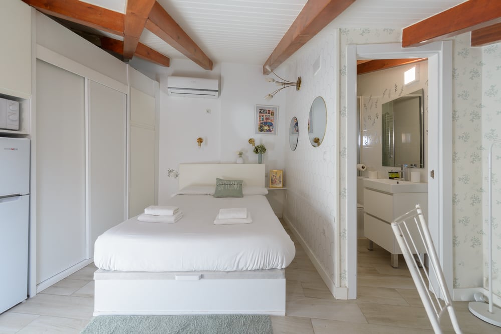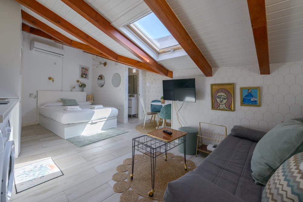 Welcome to my studio! This cosy studio in Madrid is ideal for couples. Located on the fourth floor. Please note, there is a lift in the building that goes up to the third floor, then you will have to take the stairs to the fourth floor. The open plan layout of this studio encourages an airy and cosy atmosphere. The living room has a sofa, a TV and a comfortable double bed, including bed linen. The kitchen is fully equipped with essential cooking utensils and cutlery. In addition, there is a dining table to comfortably enjoy meals. For added convenience, the studio is equipped with a washing machine (not dryer included) and ironing equipment. The full bathroom has fresh towels, a hairdryer and free toiletries. Enjoy your stay.