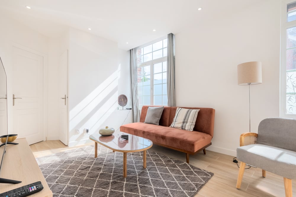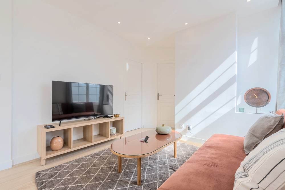 The apartment is located on Rue Raymond Derain, giving you access to the entire building. You'll love the charm of this apartment, with its comfortable living room, fully-equipped open kitchen, two spacious bedrooms with 140x200 double beds and a bathroom. The accommodation will be carefully prepared for your arrival: Professional cleaning service + laundry service for household linen. All linen is provided: bed linen, bath towels, bath mats and tea towels. The kitchen is equipped with all utensils and dishes for breakfast and dinner. Entertainment available via TV: Molotov TV and Prime Video.