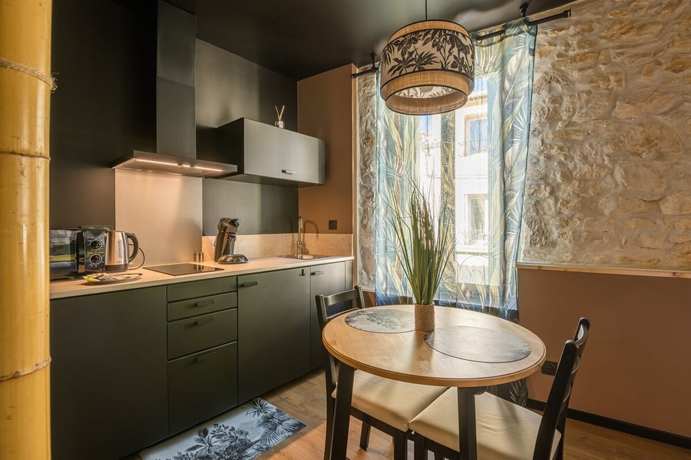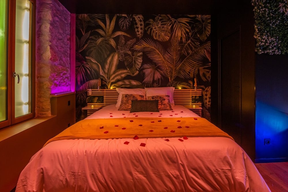 Let yourself be enchanted by the romantic ambiance of the Jungle Room in Narbonne! Ascend to the 2nd floor to enjoy a serene 31 m² apartment. Delight in the balneotherapy with its tranquil lighting, perfect for couples seeking intimacy. ✑ GOOD TO KNOW: Public parking nearby Linens and towels included Air conditioning