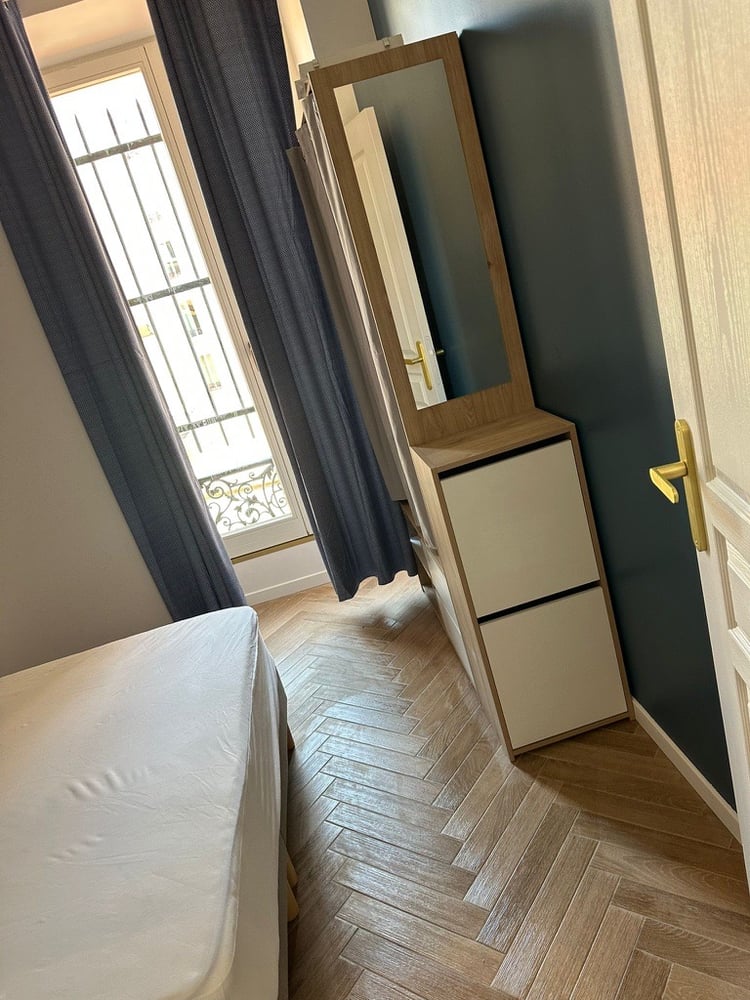 The flat is located on the 2nd floor with lift access and comprises : - One bedroom with double bed and wardrobe - One bathroom with shower, washbasin and toilet - One fully equipped kitchen opening onto a living room with sofa bed, television, table and chairs Bed linen and towels are provided.