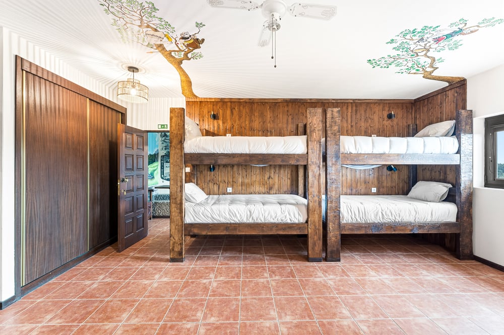 Welcome to my home! This comfortable and spacious room is part of the beautiful Quinta dos Chãos in Paredes, a property featuring several independent houses within peaceful natural surroundings. It’s an ideal option for families, groups of friends, or guests traveling together who are looking for a relaxed countryside retreat. The sleeping area includes three bunk beds, offering a total of six single mattresses, all prepared with fresh linens to ensure a comfortable and restful stay. The layout provides a practical and cozy environment, perfect for sharing while still enjoying privacy within the room. You’ll also find a smart TV for entertainment and high-speed WiFi to keep you connected throughout your stay. The private bathroom features a shower and is stocked with fresh towels and essential toiletries for your convenience. The space is always professionally cleaned to guarantee comfort and hygiene. We look forward to welcoming you — enjoy your stay!