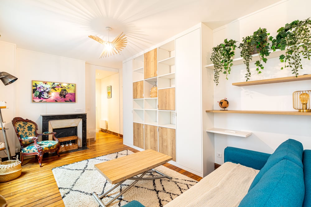 Welcome to my apartment! Situated on the 4th floor without a lift, this modern and tastefully decorated 33 m² apartment is close to various top attractions in Paris, such as the Wall of I Love You! This apartment has an open floor plan. The living room features a large sofa bed and a wide-screen smart TV for watching your favourite shows. The kitchen is fully equipped with essential cookware and cutlery for delicious meals, such as an electric stove, fridge, microwave, coffee machine, toaster, etc. The apartment also has a washer and ironing equipment for your laundry needs. The bedroom has a double bed (140x200) with complimentary hotel-quality linens for maximum comfort. The bathroom contains all the necessary amenities, including towels and complimentary toiletries. You will have access to Wi-Fi throughout your stay! For your safety, a smoke detector is installed. The apartment is always professionally cleaned for your comfort. Enjoy your stay!