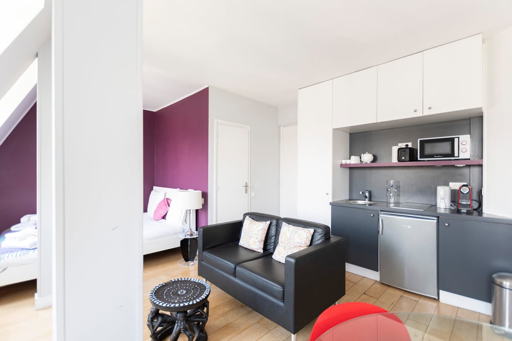 Welcome to my studio! Stylishly furnished with modern decors, this charming 30m² studio is close to Paris' top attractions, such as the Place du Trocadero and the Paris Aquarium! It is on the 7th floor, accessible with an elevator. The apartment has a comfortable sofa and a dining table for four, with a view of the Eiffel Tower. It is also equipped with a plush queen bed (160x200) with complimentary hotel-quality linens and multiple storage spaces for your belongings. The kitchen is fully equipped with essential cookware and cutlery so you can whip up a delicious meal, including a microwave, a toaster, an oven, a fridge and a Nespresso coffee machine. The bathroom has all the amenities you'll need to freshen up, such as a shower, a toilet, and a sink. Clean towels and complimentary toiletries will also be supplied for your convenience. A smoke detector is installed for your safety. You will have access to Wi-Fi throughout your stay. The studio is always professionally cleaned for your comfort. Enjoy your stay!