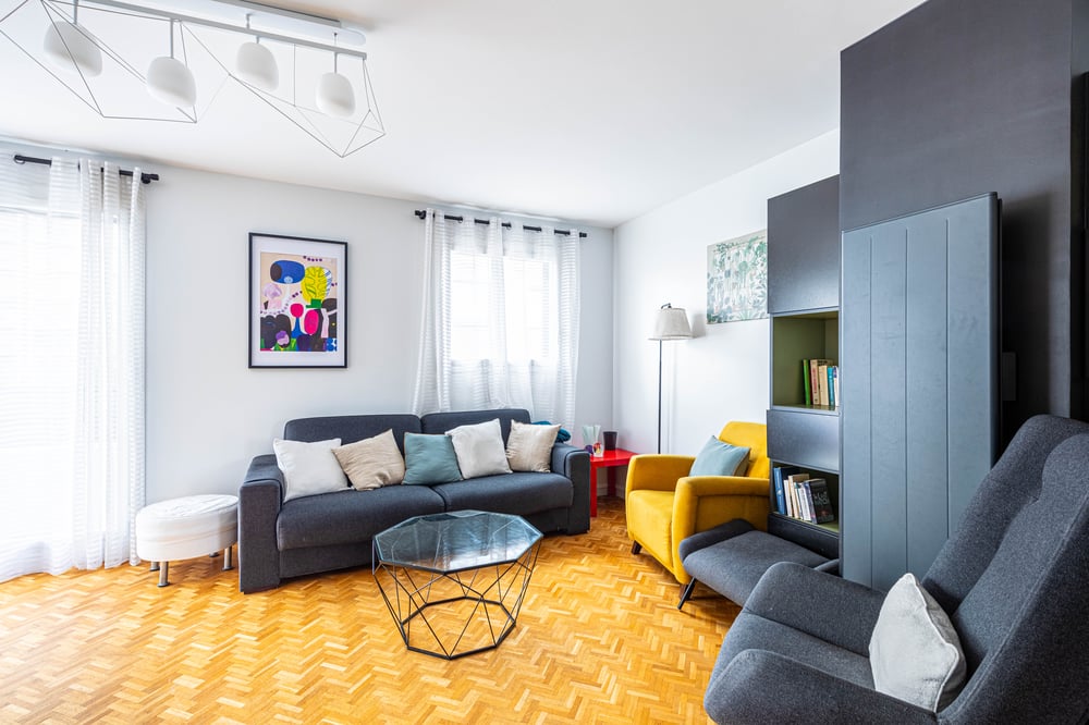 Welcome to my 114 m² apartment on the 5th floor in the 20th Arrondissement of Paris. It can comfortably accommodate five people with its four bedrooms, bright living room, fully equipped kitchen, and two bathrooms. Ideally located 3 minutes from the metro, you can easily access Paris' attractions! Please note that this apartment is available for mobility leases only.