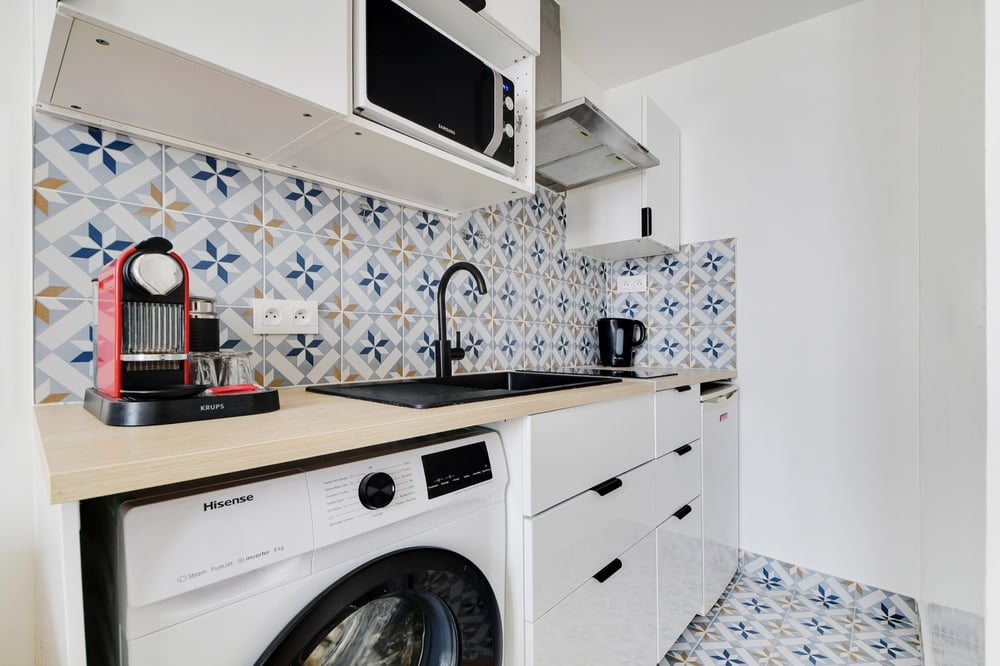 Welcome to my apartment! Situated on the 1st floor without a lift, this modern and tastefully decorated 32m² apartment is close to various top attractions in Paris, such as Sainte-Chapelle and Notre-Dame! This apartment has an open floor plan. The living room features a comfortable sofa, a wide-screen smart TV with multiple streaming options for watching your favourite shows, and a dining table for four. The kitchen has essential cookware and cutlery, including a stove and a microwave, for delicious meals. The apartment also has a washer and ironing equipment for laundry needs. Both bedrooms have a double bed, each with complimentary hotel-quality linens for maximum comfort. The bathroom contains all the necessary amenities, including towels and complimentary toiletries. The apartment is always professionally cleaned for your comfort. Enjoy your stay! *Please note that there is ongoing construction near the property. It may cause noise disturbance. Apologies in advance for any inconvenience caused.*