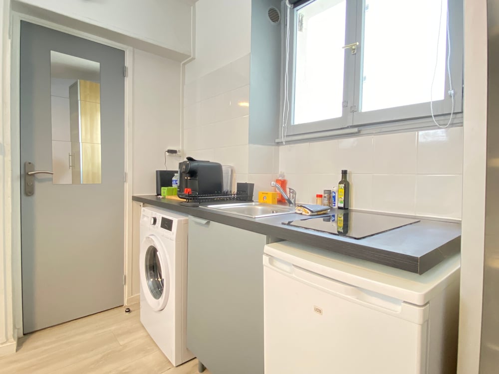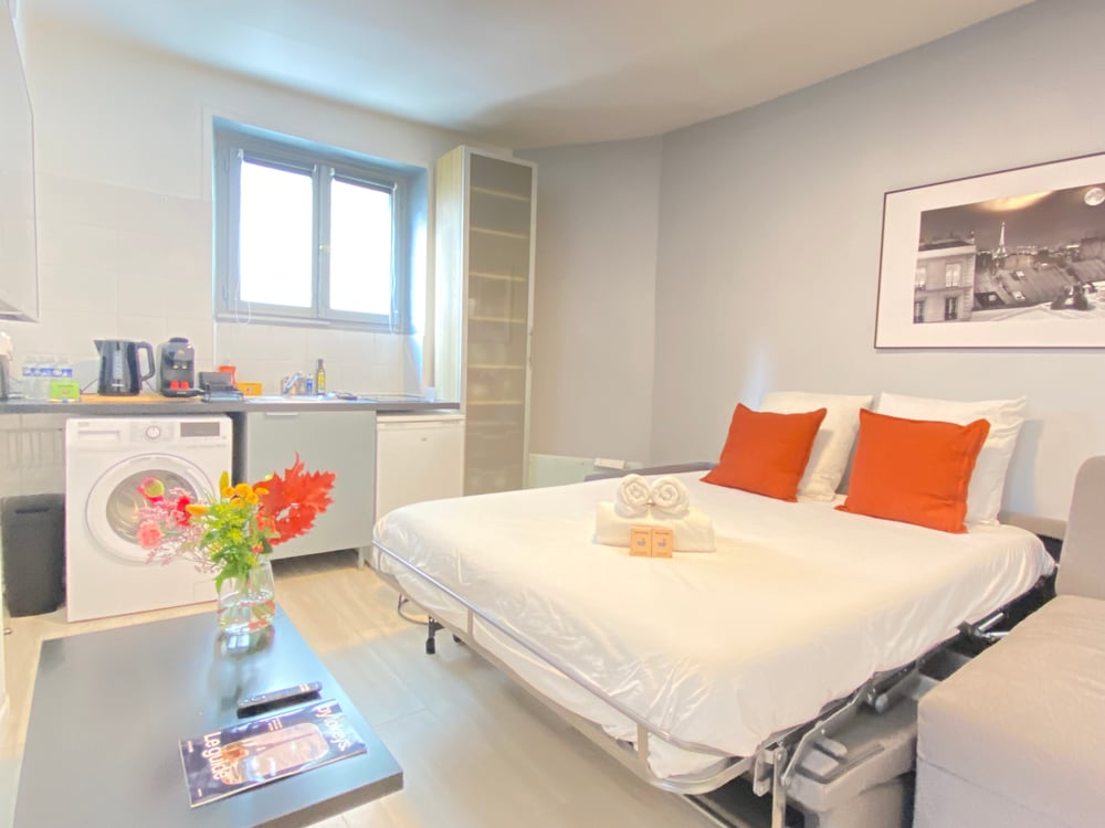 Welcome! Step into this charming and cosy 24m2 apartment, where a bright and elegantly decorated space awaits you. The living area features a very comfortable sofa that easily converts into a double bed, along with a TV for your entertainment. The fully equipped kitchen includes all the essential appliances and utensils for preparing your meals, such as a microwave, kettle and espresso machine. A washing machine is also available for your convenience. The bedroom features a double bed (160x200), carefully prepared with hotel-quality linens, along with storage space. The bathroom is fitted with a sink, a mirror, a shower, and a toilet. You will have access to Wi-Fi throughout your stay. For your safety, a smoke detector is installed. The apartment is professionally cleaned between each stay. All that’s left to do is relax and enjoy!