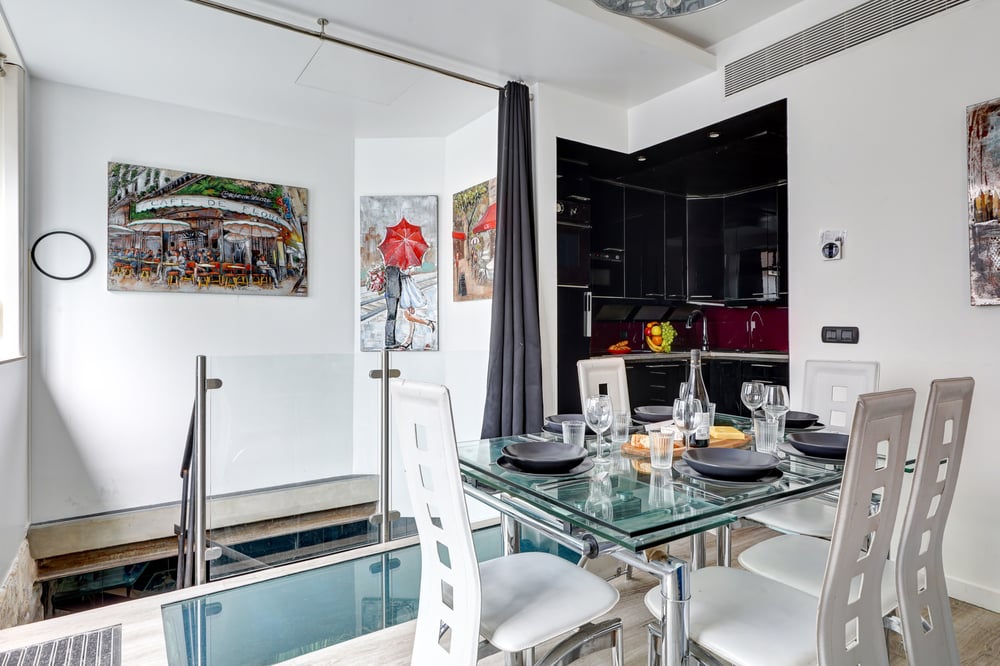 Stay in this superb 85m² duplex apartment in Paris's 17th arrondissement, which can accommodate up to 8 people. With 2 sofa beds and 2 double beds spread over two floors, a wellness area with a jacuzzi, and an ideal layout for stays with family or friends, this accommodation combines comfort, style, and relaxation.