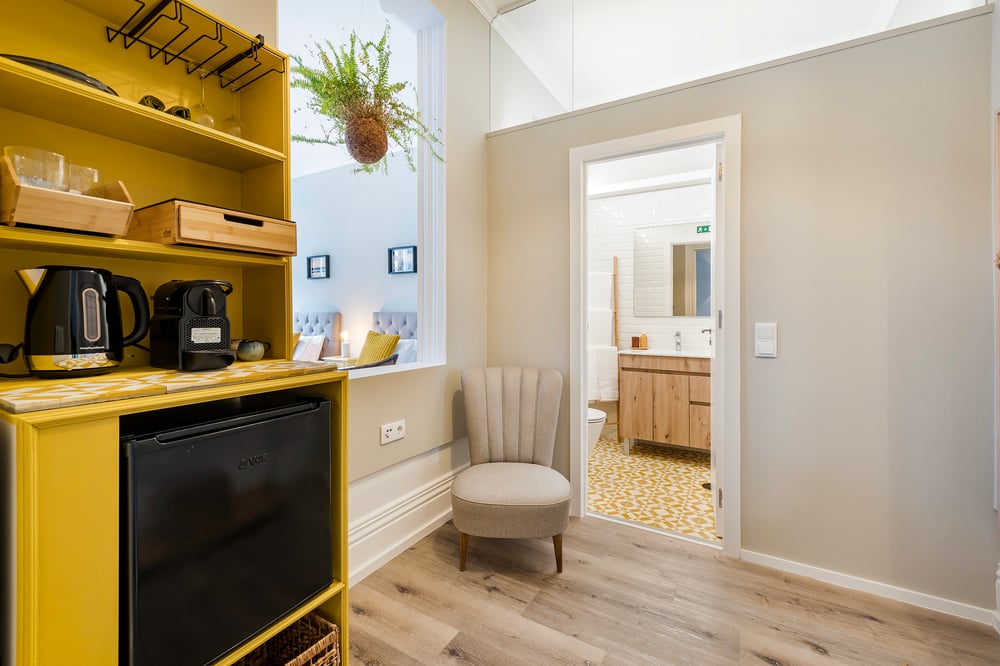 Welcome! This charming room is nestled on the second floor and is easily accessible via stairs. The room has all the essentials you need, including a coffee maker for your morning pick-me-up and a fridge to keep your drinks cool. For your convenience, hangers are provided to keep your attire neatly arranged, along with a comfortable sofa and a TV offering streaming options for entertainment after a day of exploration. The two single beds come with complimentary hotel-quality linens for maximum comfort. The bathroom contains all the necessary amenities, including clean towels and complimentary toiletries. Rest assured, professionals meticulously clean the room to ensure comfort throughout your stay. Important Note: The house has a CCTV in the common areas. Important note: There is a common" kitchen" shared by all guests that should not be used to cook but can be used to prepare fast meals ( microwave ). Enjoy your stay!