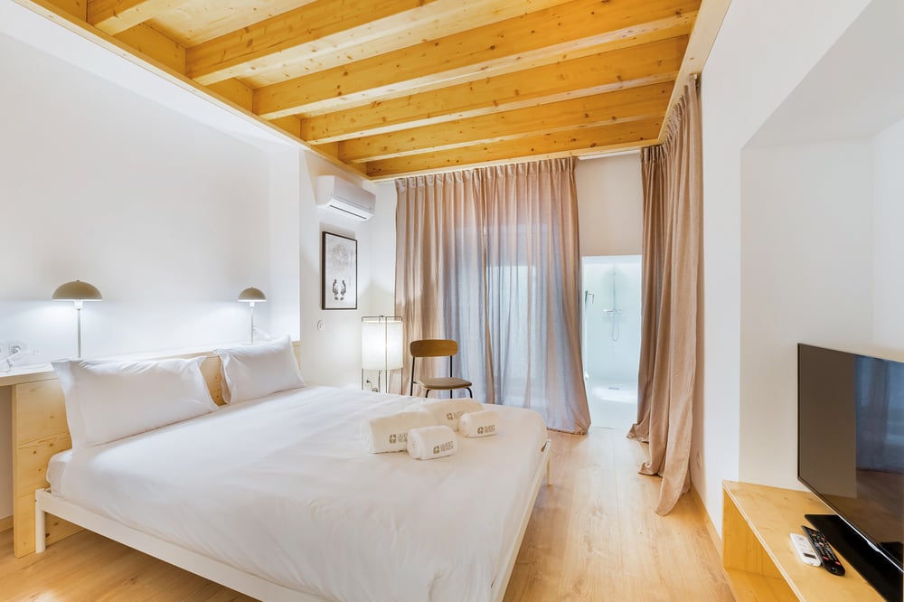 Welcome to my apartment! This delightful 120 m2 duplex apartment offers a comfortable and inviting space for your stay in this beautiful city. It is located on the 2nd floor via stairs. The wooden ceiling beams and light-toned flooring add a warm, natural touch to the space, creating a welcoming atmosphere. The living area includes a comfortable sofa and a flat-screen TV, perfect for relaxing after a day out. A small dining table is ideal for casual meals or work. The open layout also includes a compact yet well-equipped kitchenette featuring a microwave, cooking plate, sink, and essential cookware for meals. The sleeping area features a cosy double bed carefully made with hotel-quality linen and an ensuite bathroom with all the amenities you need to freshen up, including clean towels and complimentary toiletries. The apartment also boasts a private garden, which can be accessed directly from the bedroom, perfect for enjoying a quiet morning coffee or relaxing in the open air. Downstairs, you’ll find a second bedroom featuring a comfortable double bed and its own private bathroom, offering added privacy and convenience. Cleaning will be done before your anticipated arrival. Enjoy your stay!