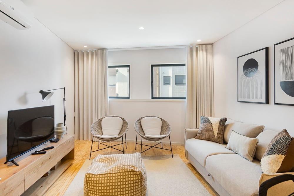 Before your check-in, we will send you your check-in options and where to pick up the keys. Please note that personal check-in with a concierge costs 10€, pending availability. Once a reservation is confirmed, guests are requested to complete a guest registration form following the legal obligations stipulated by local authorities in Portugal. We provide the basic amenities for the first use: samples of shower gel, shampoo, soap, toilet paper, kitchen roll, sponge, dishwashing products and bin bag. Please let us know if you need cleaning or extra linen; we will gladly provide an additional charge. There is a zero-tolerance policy for smoking on the property. If our team discovers evidence that this rule has been breached (e.g., smoke smell, ashes, butts, etc.), we fully reserve the right to charge a €200 smoking fee at a minimum. Please note that for stays longer than 30 nights, a fair use policy of the utilities will apply with a limit of 80€. Extra keys: 20€ (extra pair of keys when available, lost keys or service to open the door during your stay). Extra cleaning with linen: the price of a cleaning fee. Extra Clothing: 30€ (Towels and sheets for 2pax, i.e. when the sofa bed is not included).