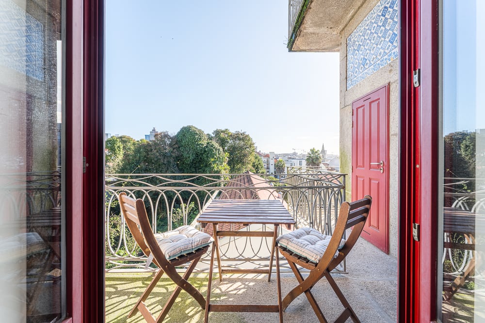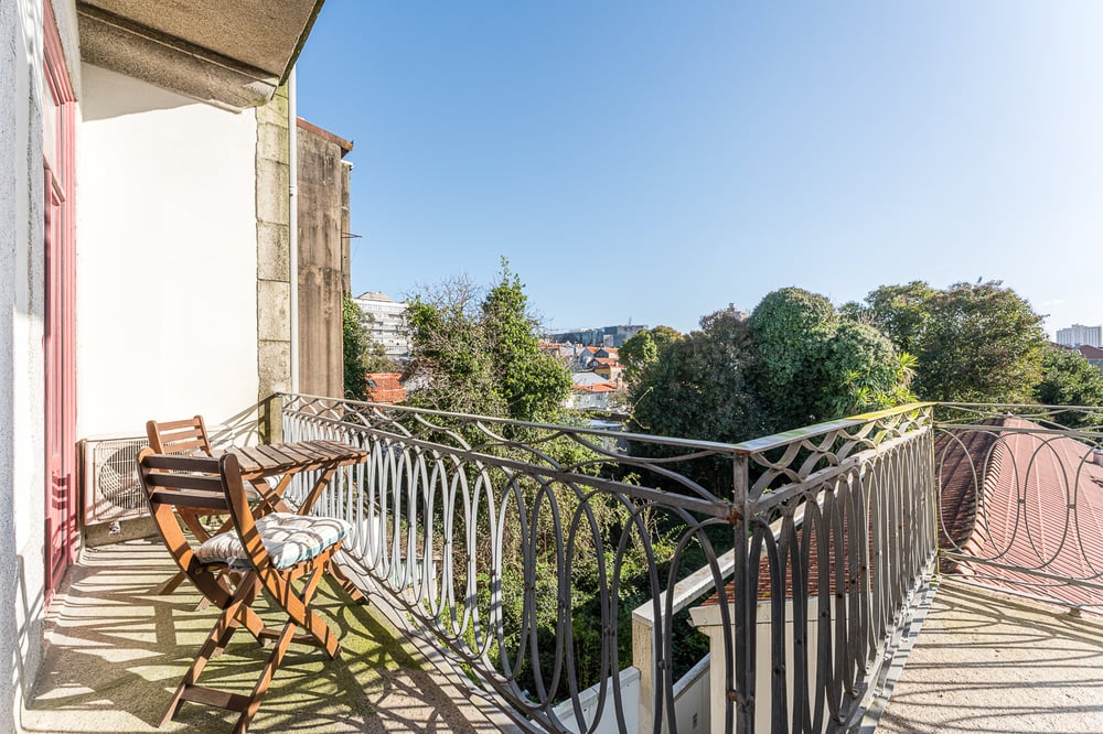 Welcome! This charming apartment with a balcony, thoughtfully decorated to provide comfort and make you feel right at home, is the perfect starting point for exploring Porto and its attractions. Ideal for couples, this accommodation features an open-plan living room and kitchen. The living area is furnished with a comfortable sofa and a dining table, and it also includes air conditioning for your comfort—making it the perfect spot to relax and watch TV. The kitchen is fully equipped, making it ideal for preparing your daily meals. Alongside basic dinnerware and utensils, it includes a kettle, microwave, oven, and stovetop to make your day-to-day easier. The balcony is conveniently accessible from the living area and kitchen, allowing you to soak up the sun and enjoy the abundant natural light that brightens the entire space. It offers a lovely view of the surrounding rooftops and trees, and also features a washing machine located in an outdoor annex. The bedroom is harmoniously decorated with classic touches, featuring a double bed and a built-in wardrobe to store your belongings. The bed is fitted with high-quality linens to ensure maximum comfort. The bathroom provides all the necessary amenities, including fresh towels and complimentary toiletries for your convenience. The space is always professionally cleaned. Enjoy your stay!