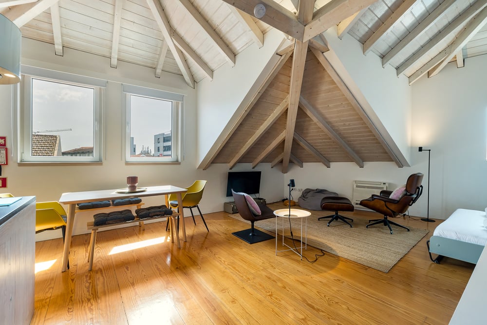 Welcome to my apartment! The property is located on the 3rd floor without an elevator. This apartment offers a free private parking space upon request. Please note that the garage entrance is narrow due to the historical building. To make access easier, we provide video instructions and a portable wooden ramp stored inside the apartment, which you can use after collecting the keys. Occasionally, access may be limited if cars are parked in front of the garage, so it’s best to temporarily park further down the road and wait until the car is gone. While the apartment has no elevator, the climb is well worth it once you arrive at the beautifully decorated space. This charming one-bedroom apartment with 72m2 is the perfect choice for couples and families looking for a comfortable and convenient stay. It is ideally situated, providing easy access to all of Porto's attractions and amenities. The spacious living area, carefully furnished with good taste and leather details, is ready to provide a maximum comfort experience while you watch TV and relax. The TV has over 100 channels available, and the apartment offers high-speed internet to ensure you stay connected! The living room seamlessly blends with a practical kitchenette and a dining area by the window, which allows for natural light and offers city views. In the living room, there is also a built-in Murphy bed that is prepared for reservations with more than two guests or upon request for guests who wish to sleep separately. The queen-size bed fits perfectly into the living room layout, allowing you to fully enjoy the living space even when it is open, and freeing up space for socialising when it is closed. In both configurations, comfort is never compromised! The master bedroom is spacious, has a full queen-sized bed with an ensuite private bathroom and amenities. Tucked in the corner under the roof is a comfy sofa to read and relax after a busy day. The kitchenette is fully equipped with essential cookware and cutlery to prepare delicious meals, including a stove, an oven, and a microwave. For added convenience, the property also features a dishwasher for easy clean-up. The bathroom contains all the necessary amenities, including fresh towels and complimentary toiletries. The apartment is always professionally cleaned for your comfort. Enjoy your stay!