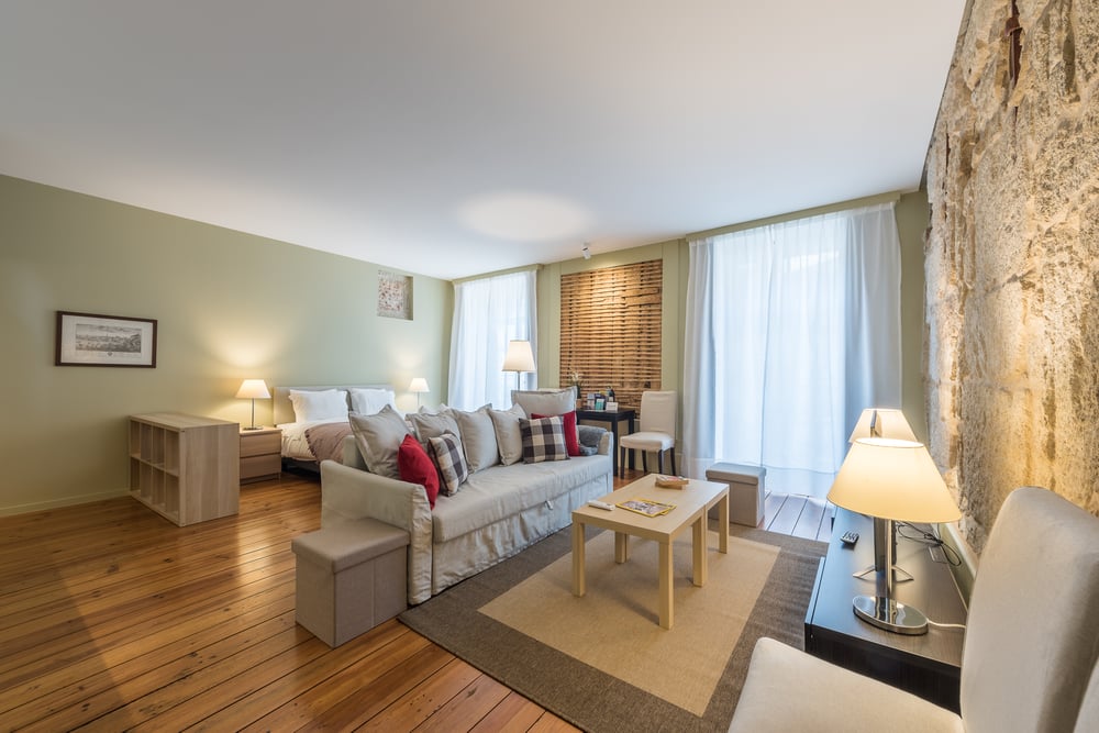 The six “São Domingos” apartments are located at the end of “Rua das Flores”, less than 150 meters from Ribeira, the typical and famous area by the River Douro. Each apartment is fully equipped, including air conditioning and windows with thermal and acoustic insulation. It is located in the 2nd floor without an elevator. “Old Walls” is one of these apartments, which owes its name to parts of the original walls of the building on display. The 44-square-meter apartment is on the second floor of the building and can accommodate up to two adults. In this large open space, with a balcony overlooking the Square, there is a queen-size bed, a sofa, a flat-screen TV, a fully equipped kitchenette, a dining table, among other amenities. There is a full bathroom. A crib can be provided on request.